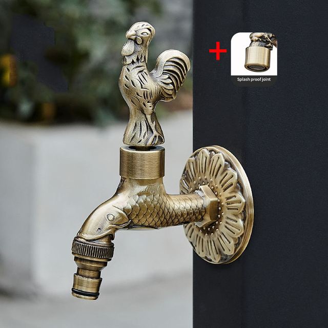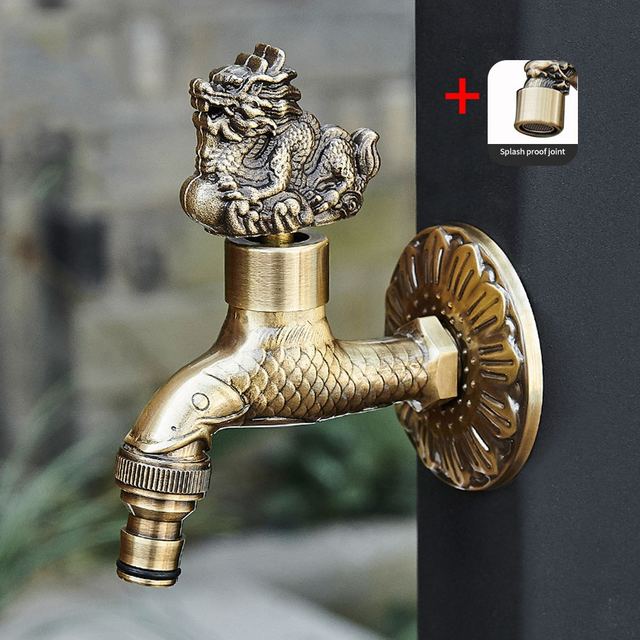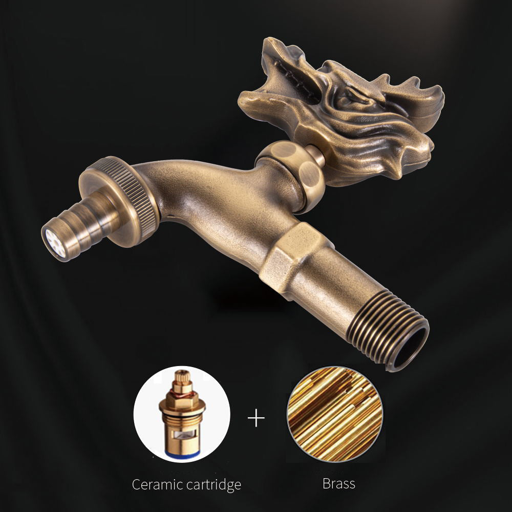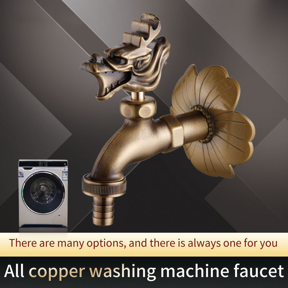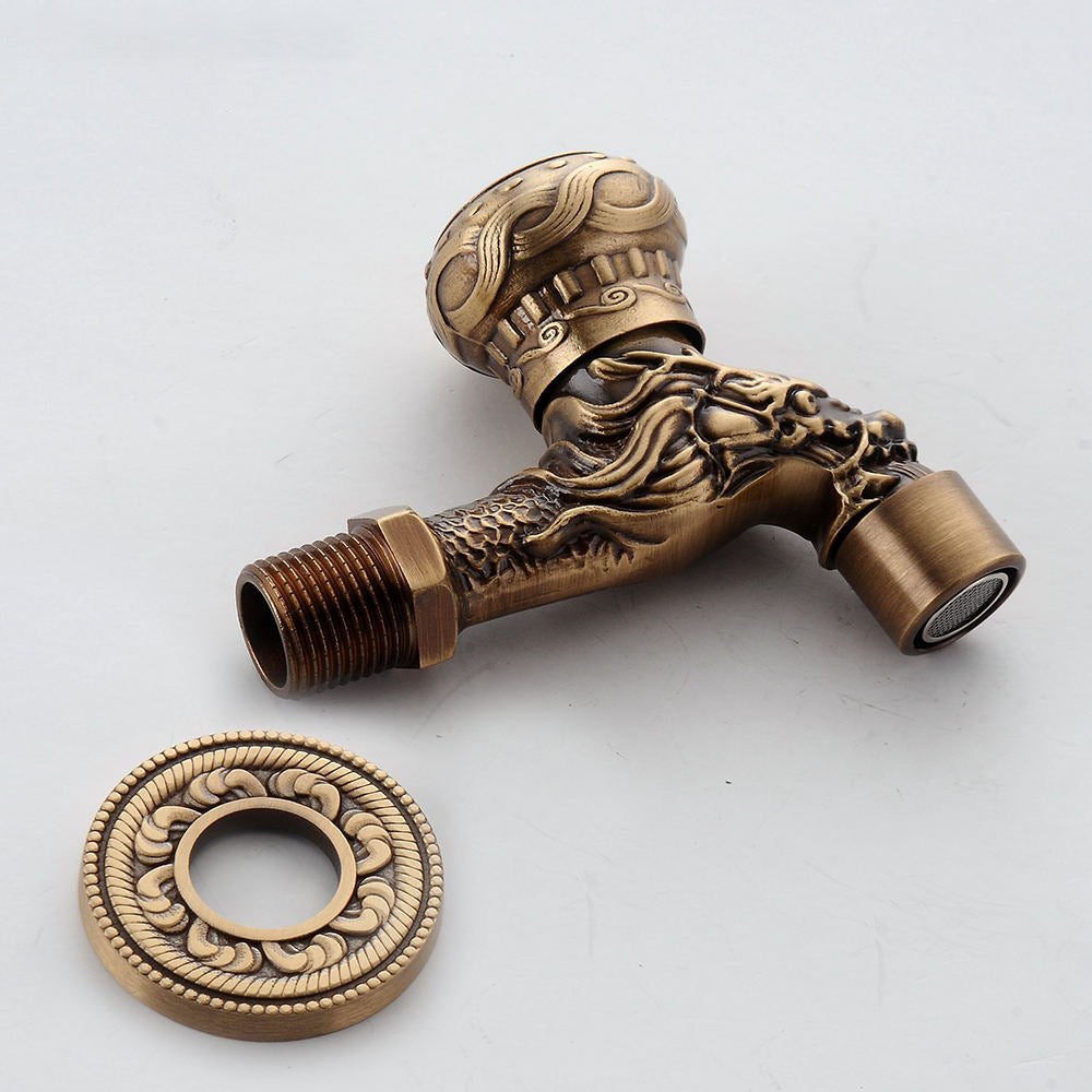 Antique Carved Brass Faucet Copper Garden Taps for Washing Machine