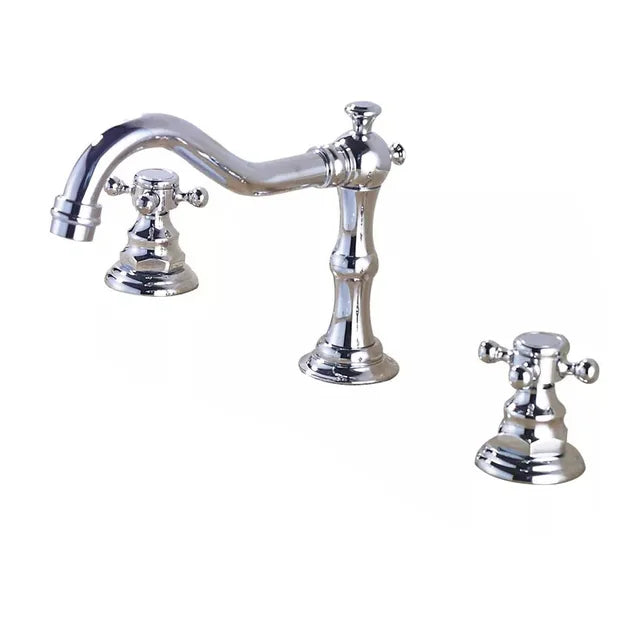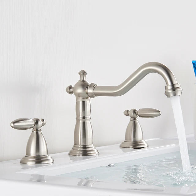 3 Holes Basin Faucet Deck Mount Tap Water Double Handles Basin Tap