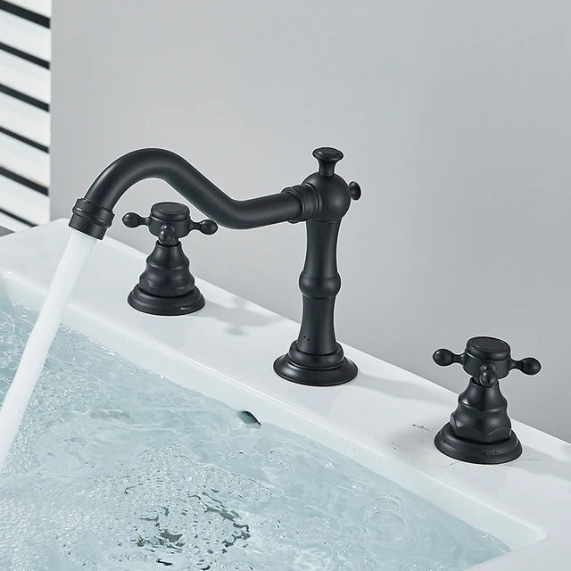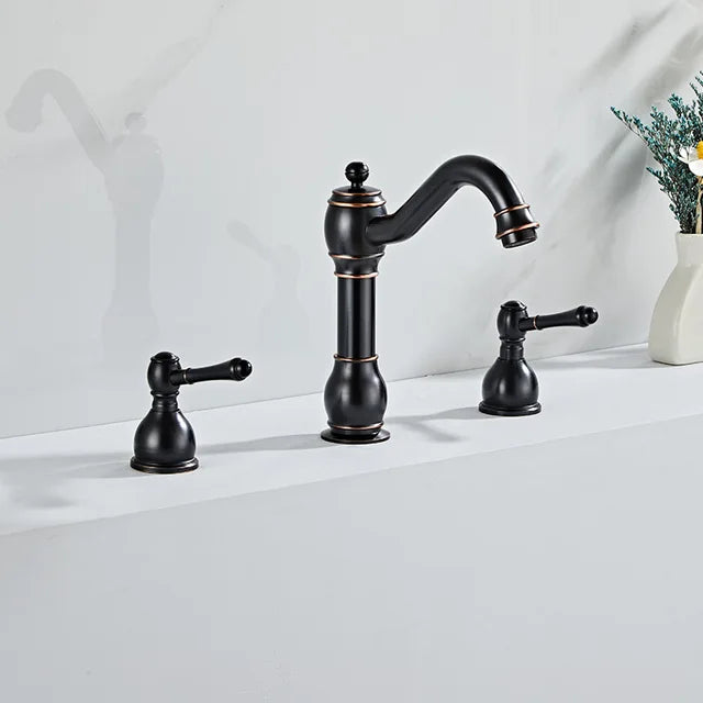 3 Hole Bathroom Faucet Antique Bronze Double Handle Basin Sink Faucet