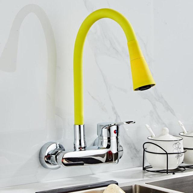 360 Degree Swivel Flexible Double Holes Wall Mounted Solid Brass Kitchen Faucet In Colors