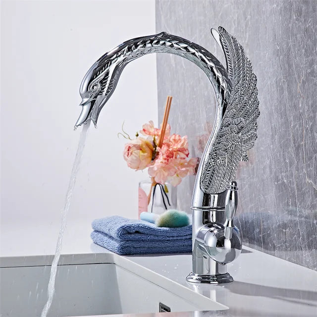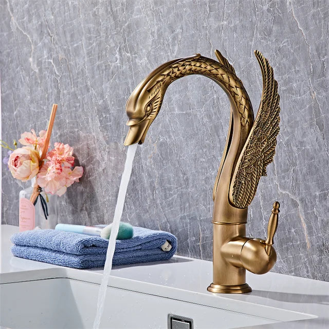 Antique Swan Bathroom Faucet Basin Faucet Mixer Tap Waterfall Faucet