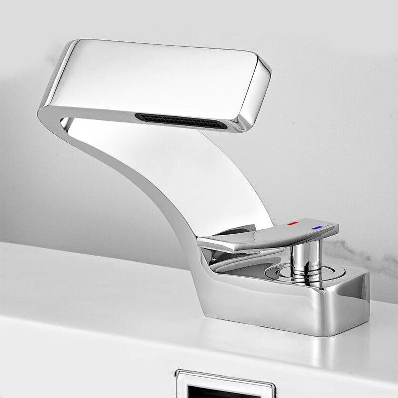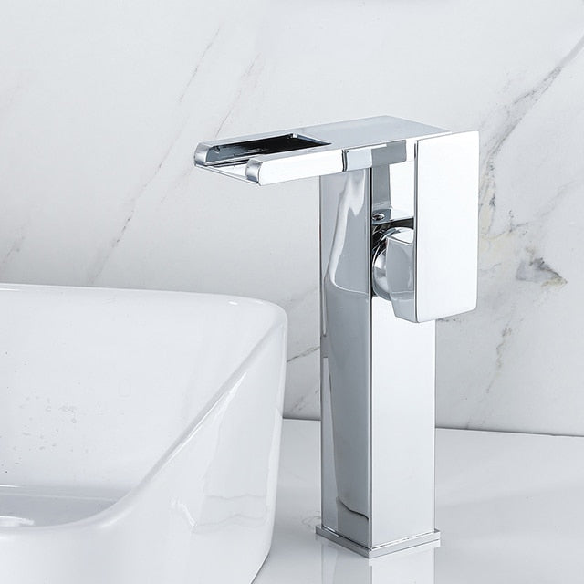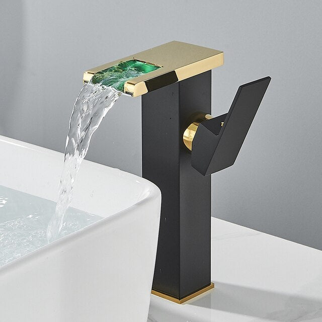 LED Waterfall Faucet Color Changes With Temperature Basin Mixer Tap