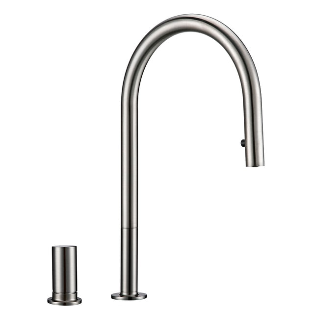 Single Handle Double Hole Kitchen Sink Faucet Pull Down Faucet Sprayer