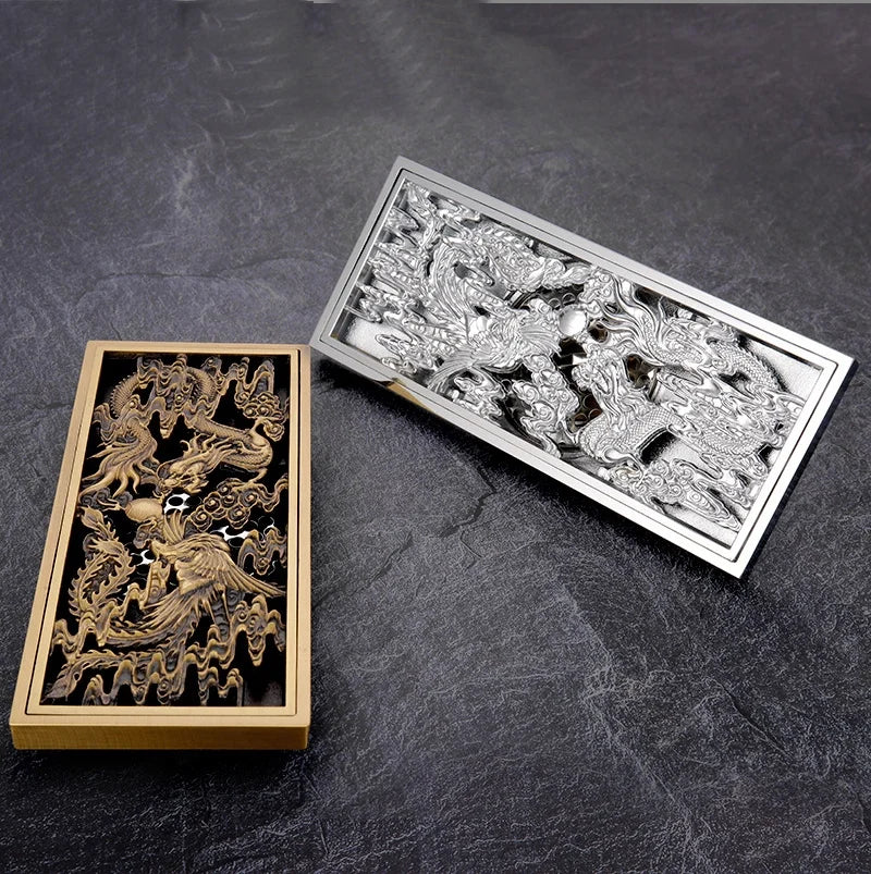 Antique Copper Dragon Phoenix Design Displacement Bathroom Floor Drain