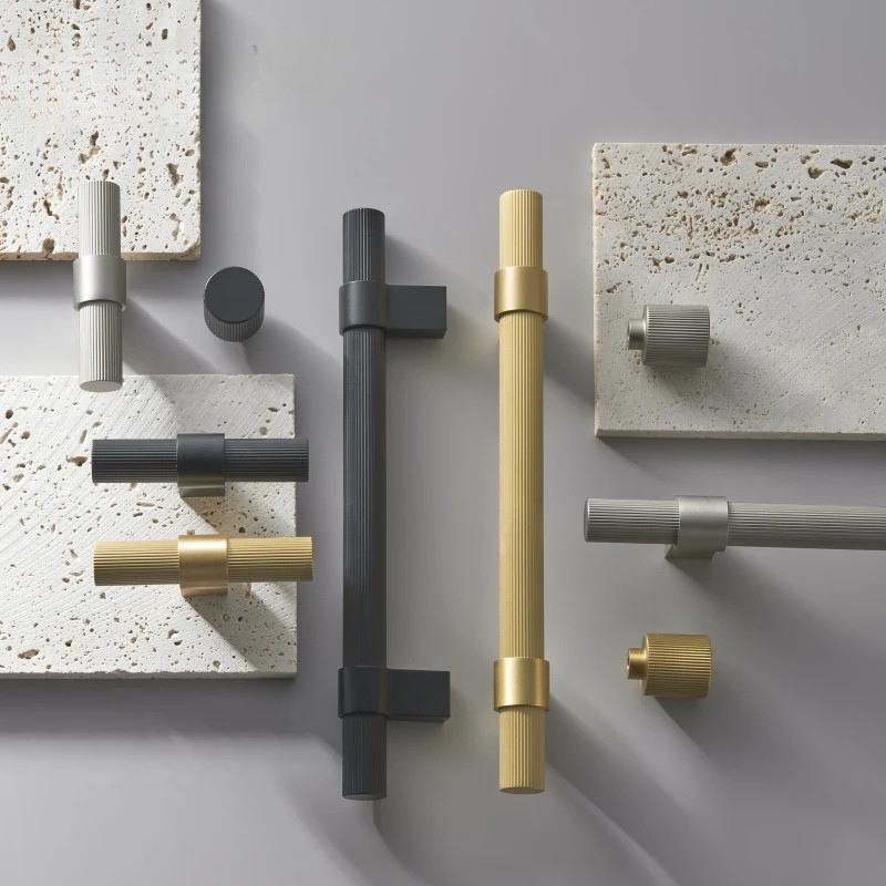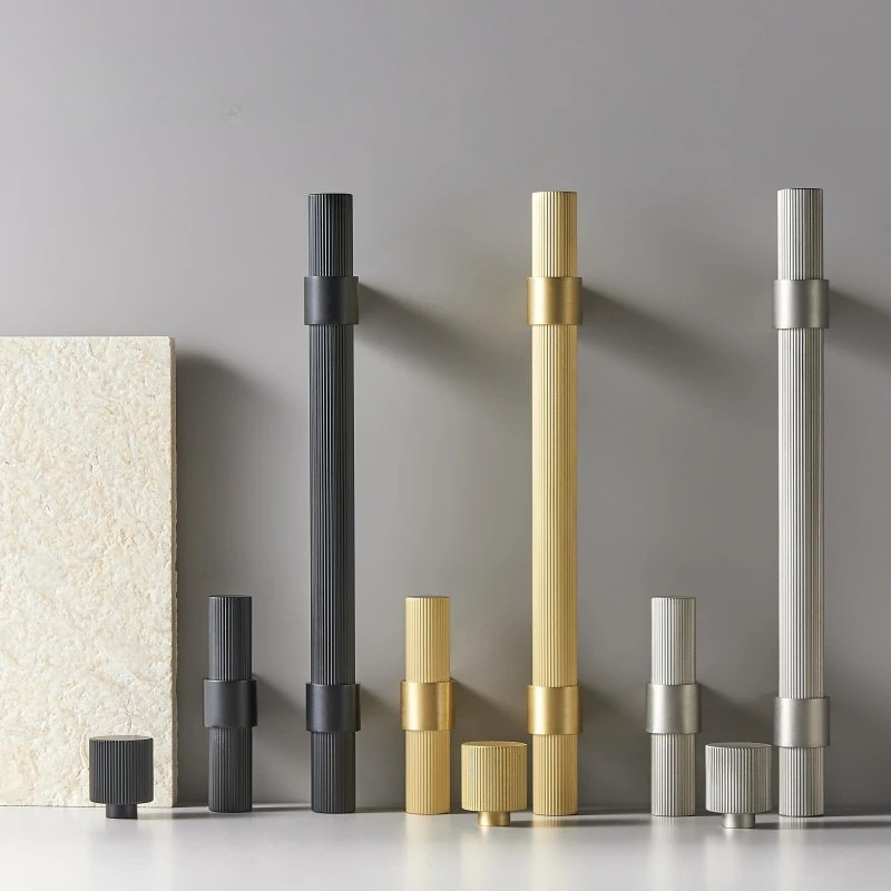 Brass Furniture Handle Modern Striped Cupboard Wardrobe Cabinet Knobs