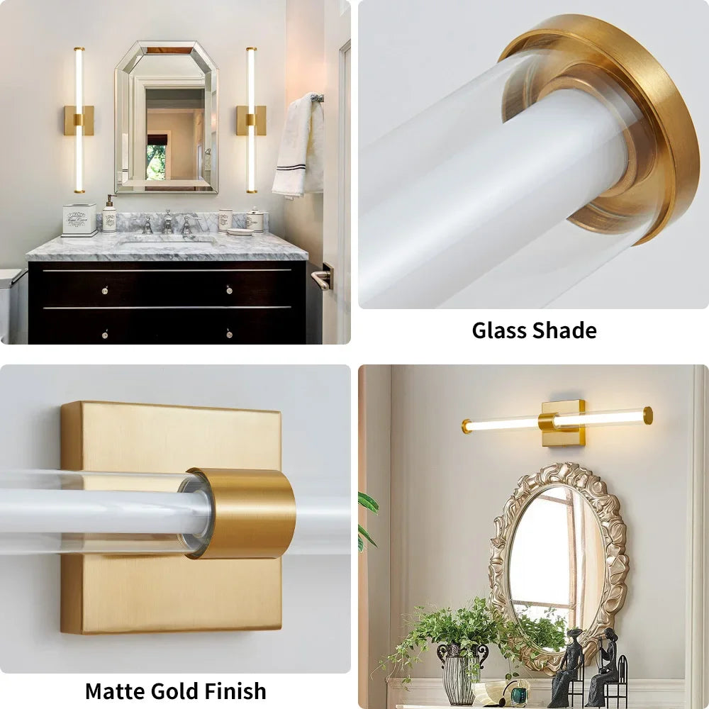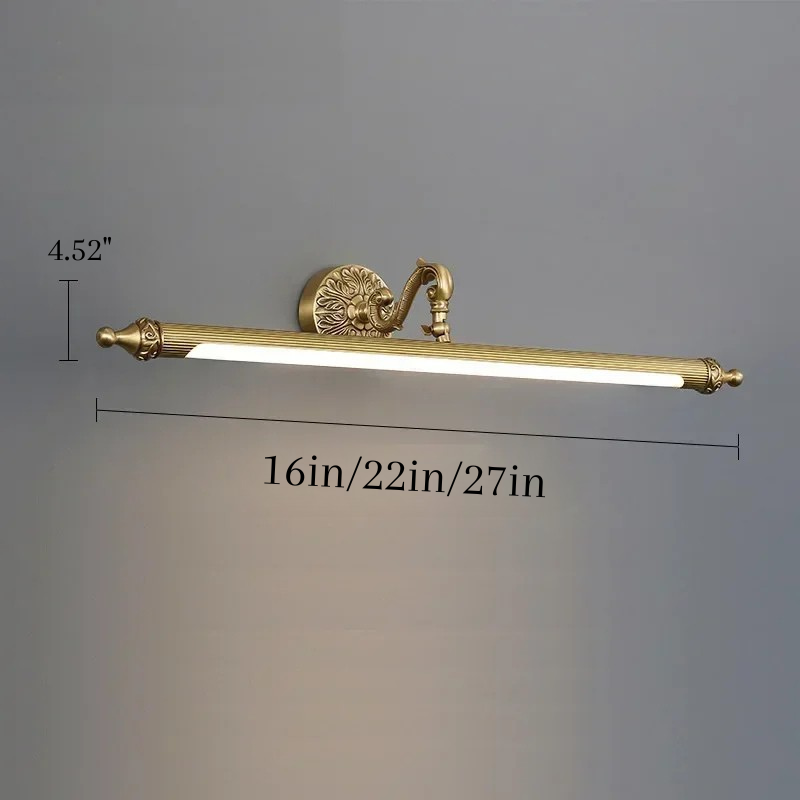 Full Copper Mirror Front Wall Lamp Golden Anti-Fog LED Bathroom Light