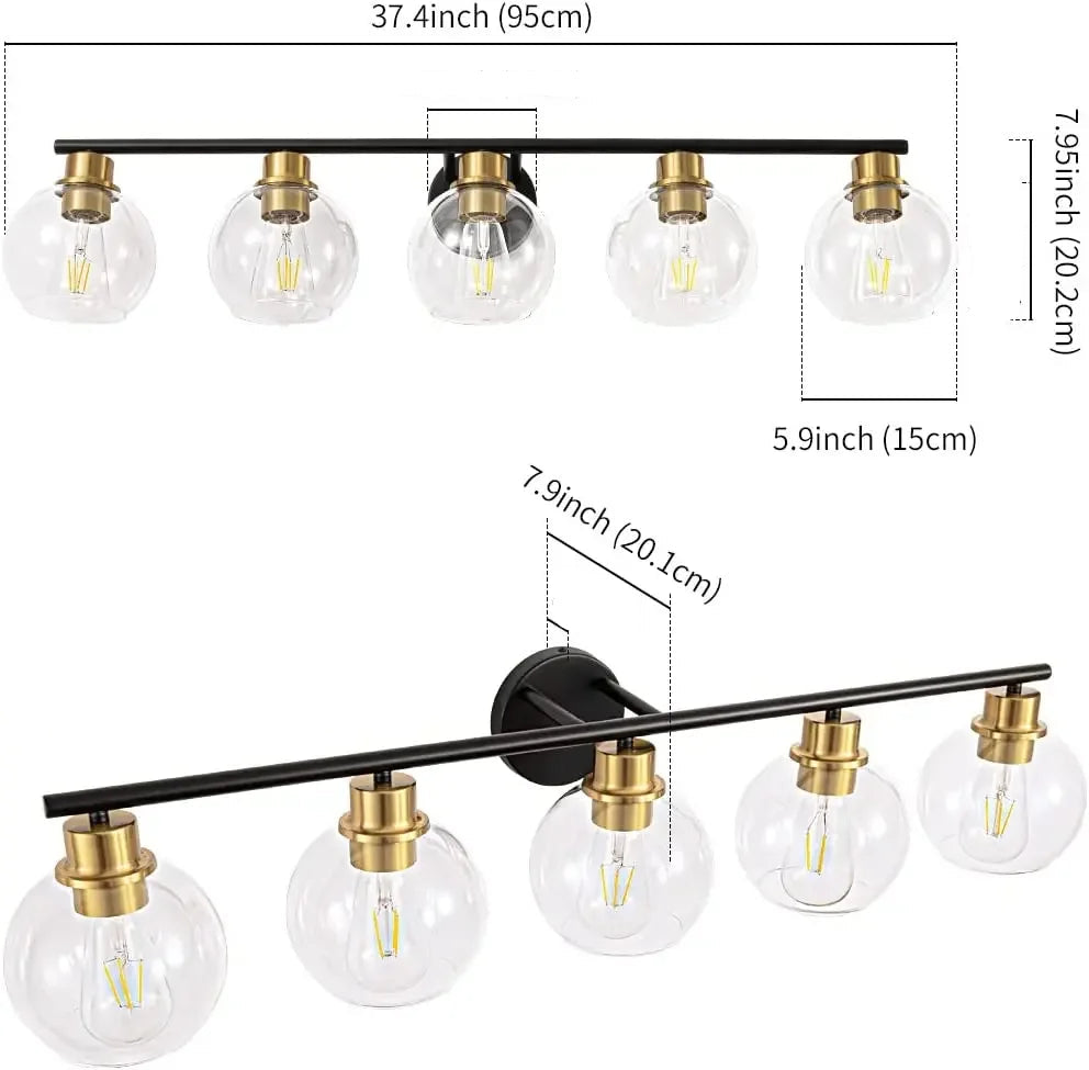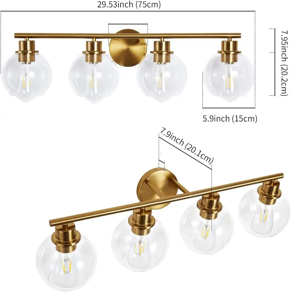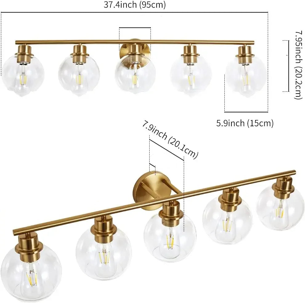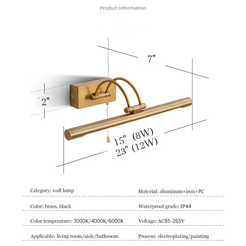 LED Bathroom Mirror Light Metal Brass Wall Mounted Vanity Lamp
