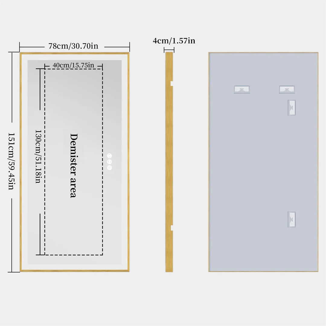 LED Bathroom Mirror Dimmable Light Wall Mounted Mirror with Demist