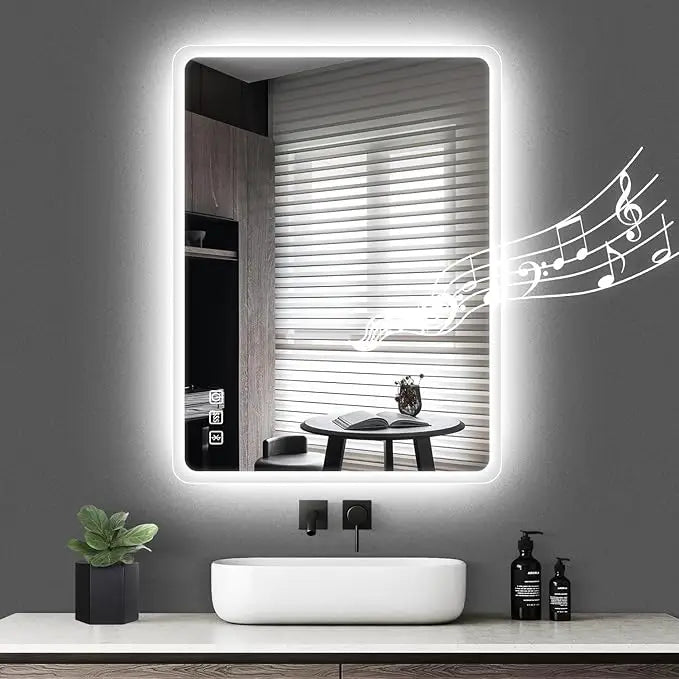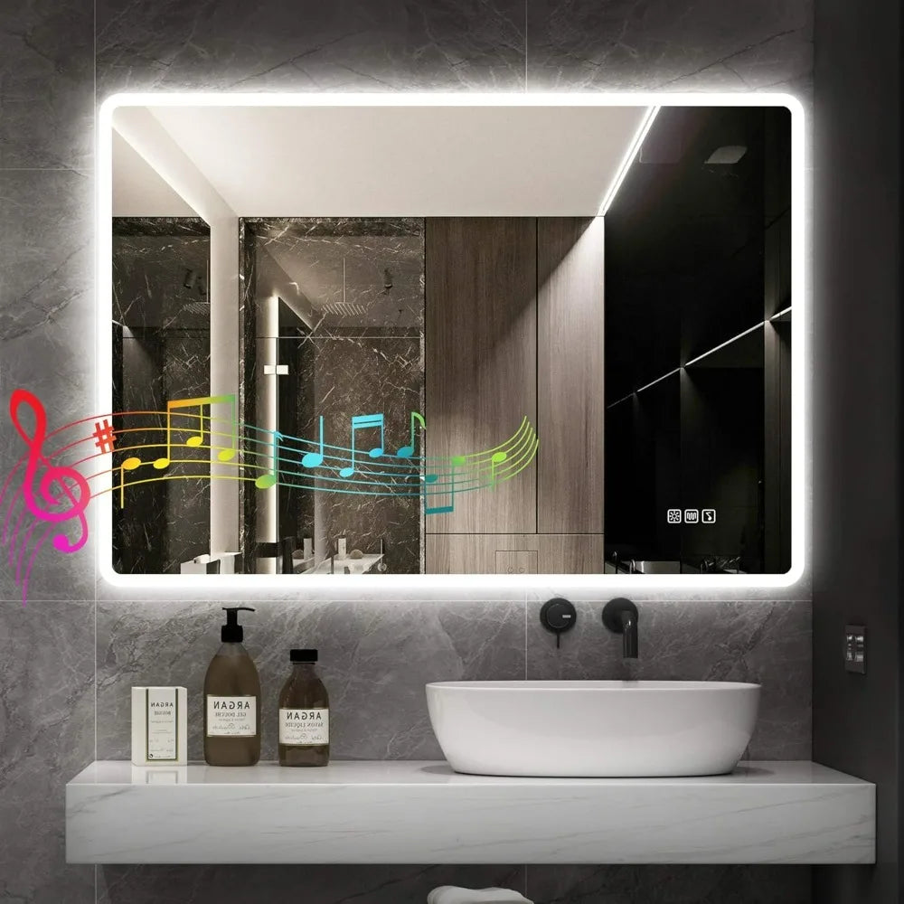 Wall Mount LED Bathroom Smart Mirror with Light and Bluetooth Speaker