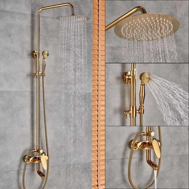 Index Bath Golden Brass Shower Faucet With Dual Handle 8' Rainfall Showerhead System Set