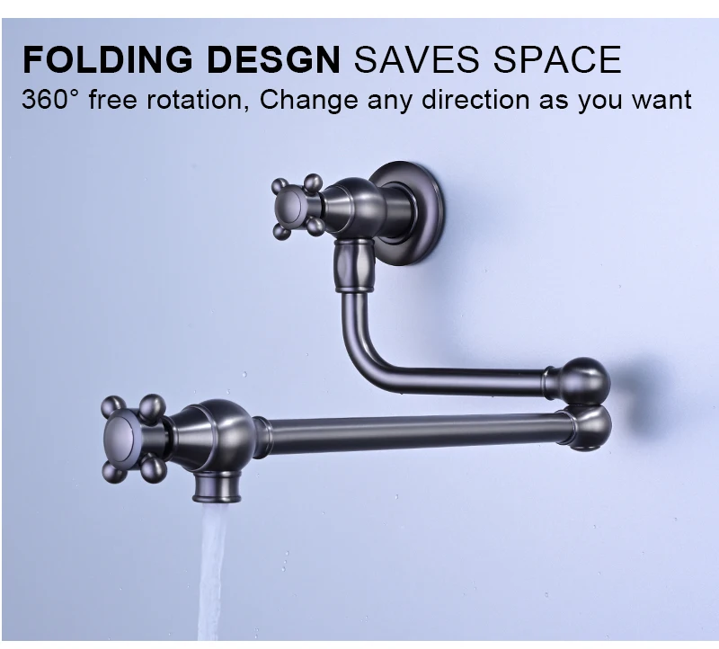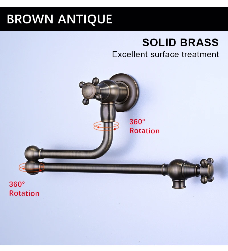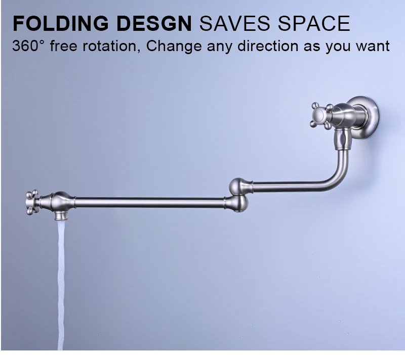 Brass Pot Filler Kitchen Folding Wall Faucet 360 Degree Rotation Tap