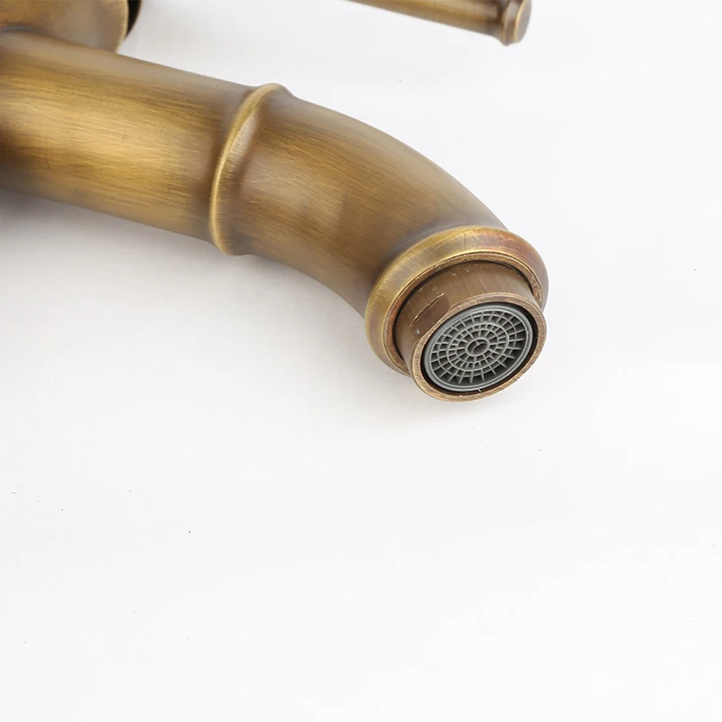 Bathroom Basin Faucet Antique Brass Bamboo Shape Mixer Tap Faucet
