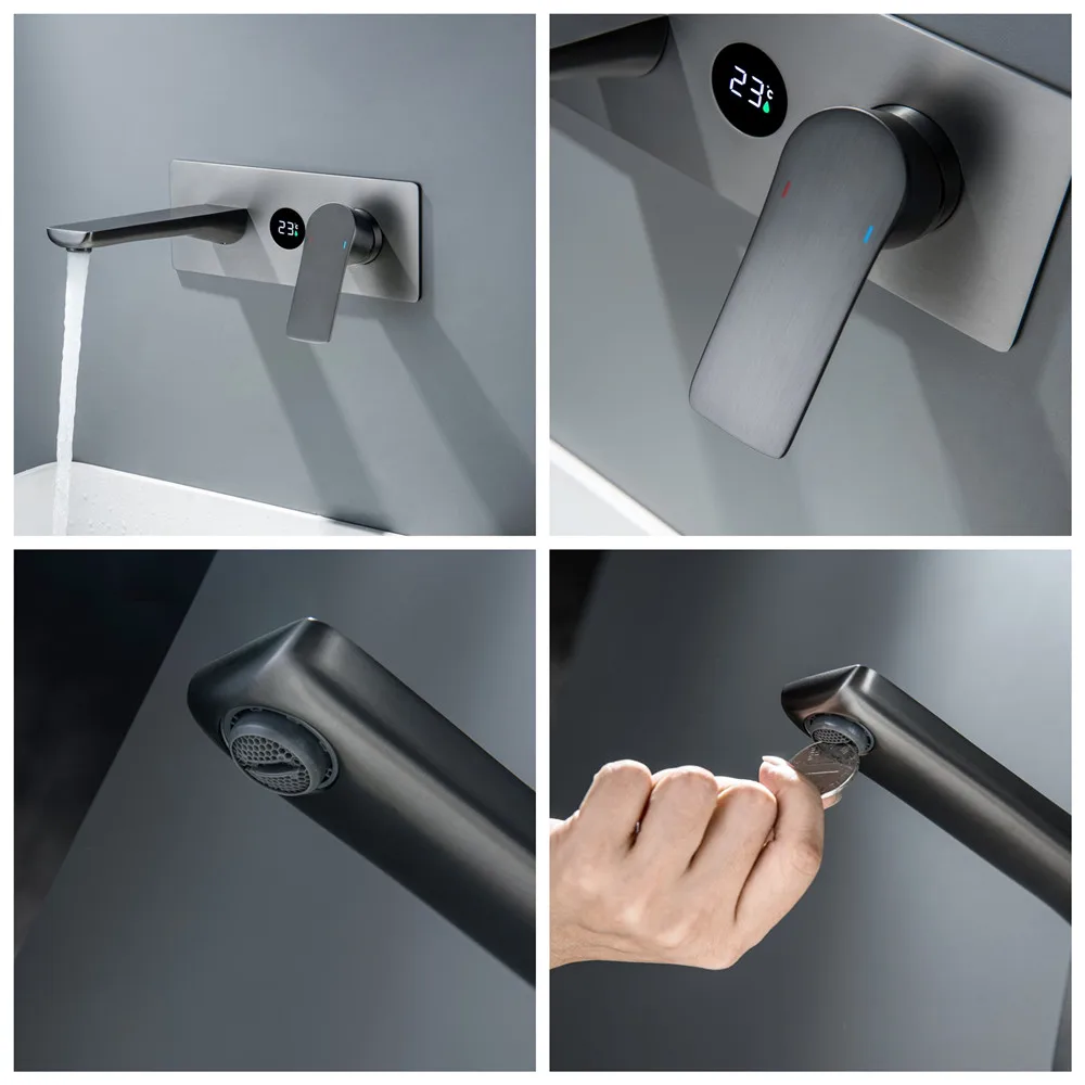 Concealed Digital Display Brass Basin Faucet In-Wall Spout Mixer Tap