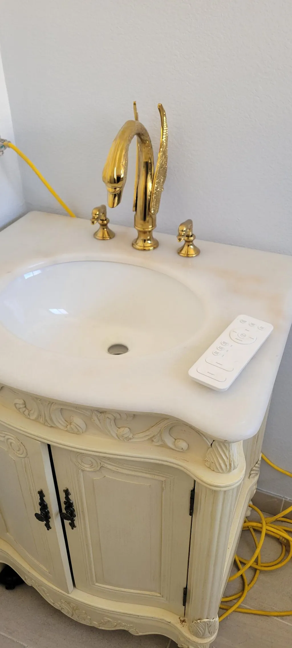 The faucet has a unique and beautiful swan shape that adds an elegant touch to any bathroom décor. The golden finish enhances the luxurious look of the faucet.