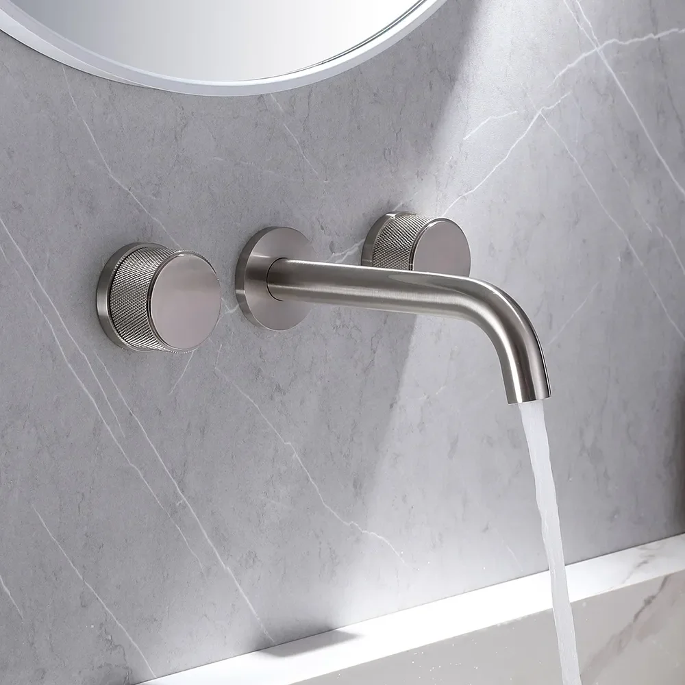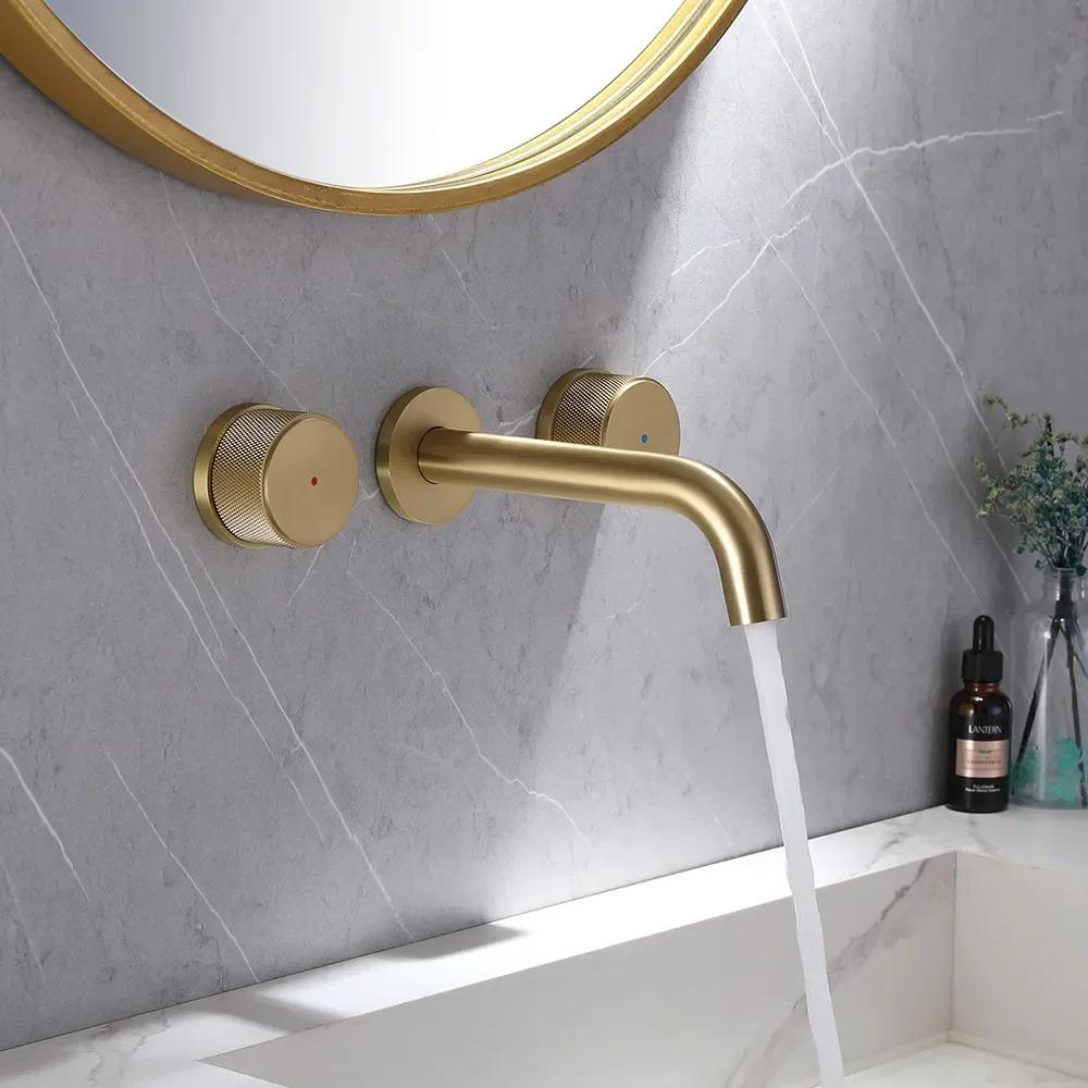 Wall Mounted Brass Bathroom Faucet Double Handle Water Mixer Basin Tap