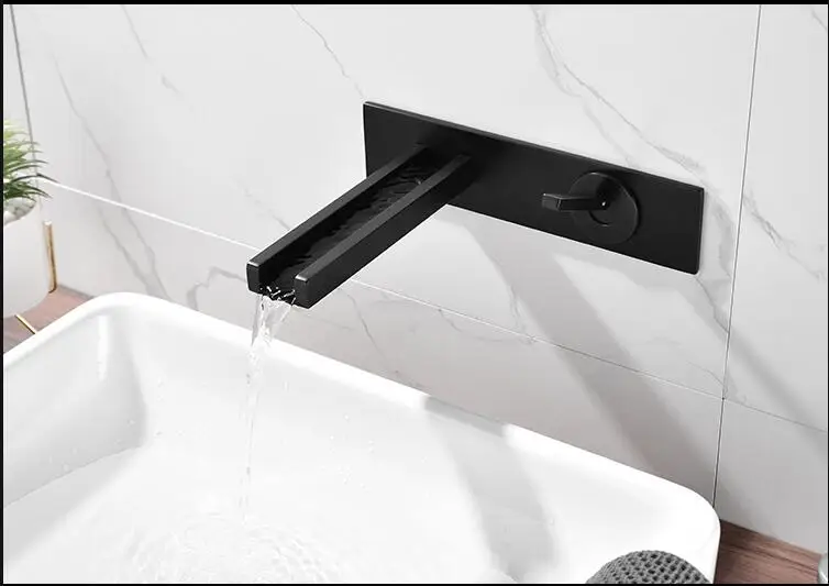 Wall Mounted Concealed Basin Faucet Brass Waterfall Water Mixer Tap