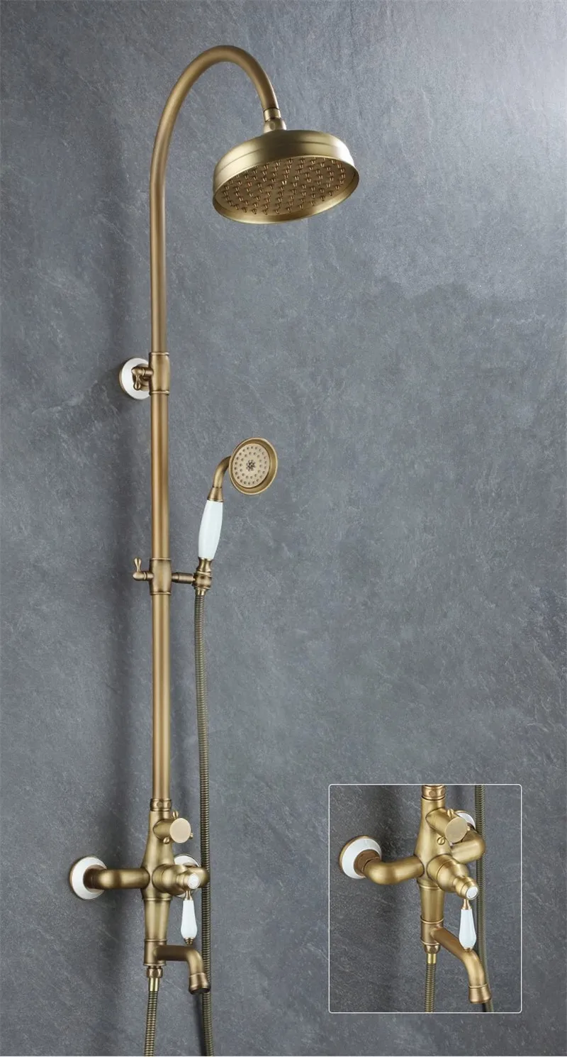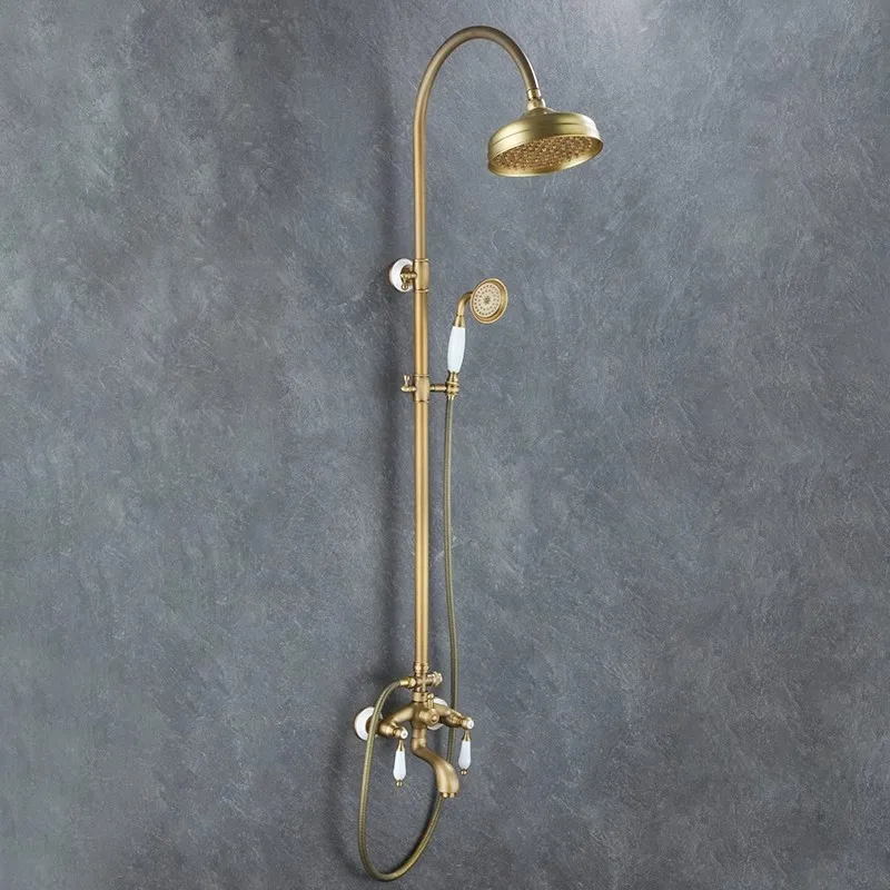 Antique Bathroom Shower Faucet Set Brass Rainfall Shower Mixer Tap
