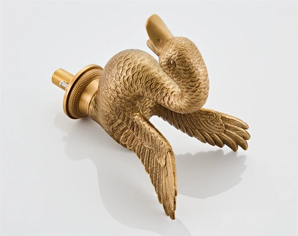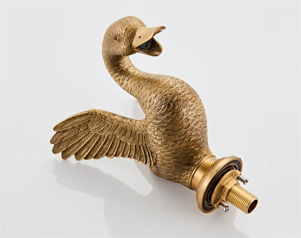 Antique Swan Bathroom Faucet Widespread Sink Tap Brass Basin Faucet