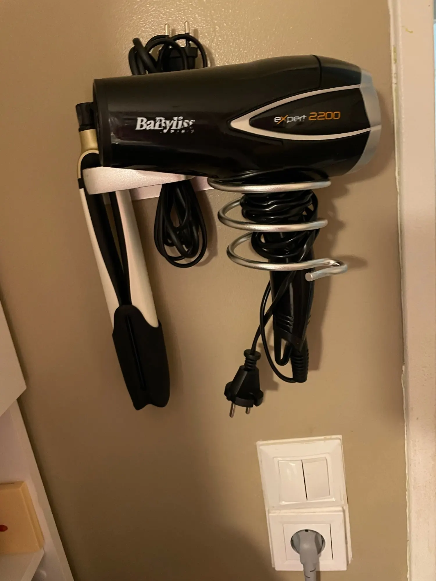 - Storage hanger hair dryer holder holds the hairdryer tools to prevent moving around.