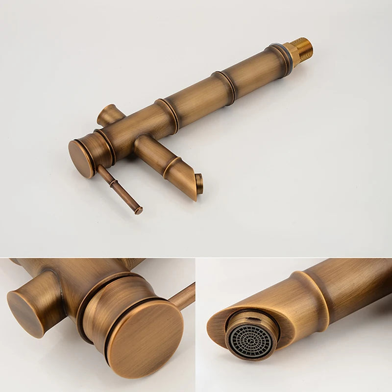 Bathroom Basin Faucet Antique Brass Bamboo Shape Mixer Tap Faucet