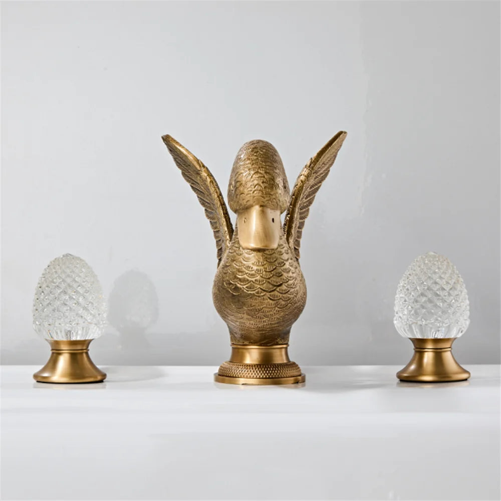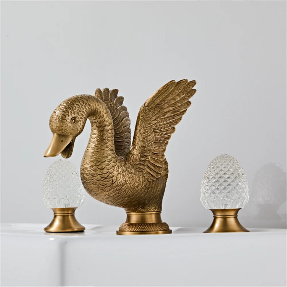 Antique Swan Bathroom Faucet Widespread Sink Tap Brass Basin Faucet