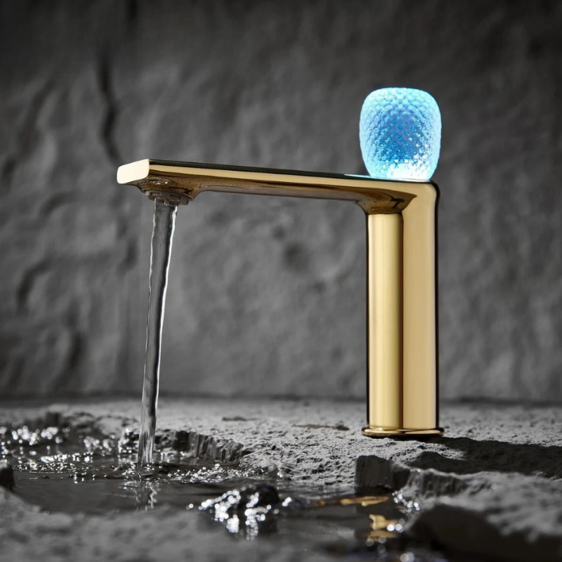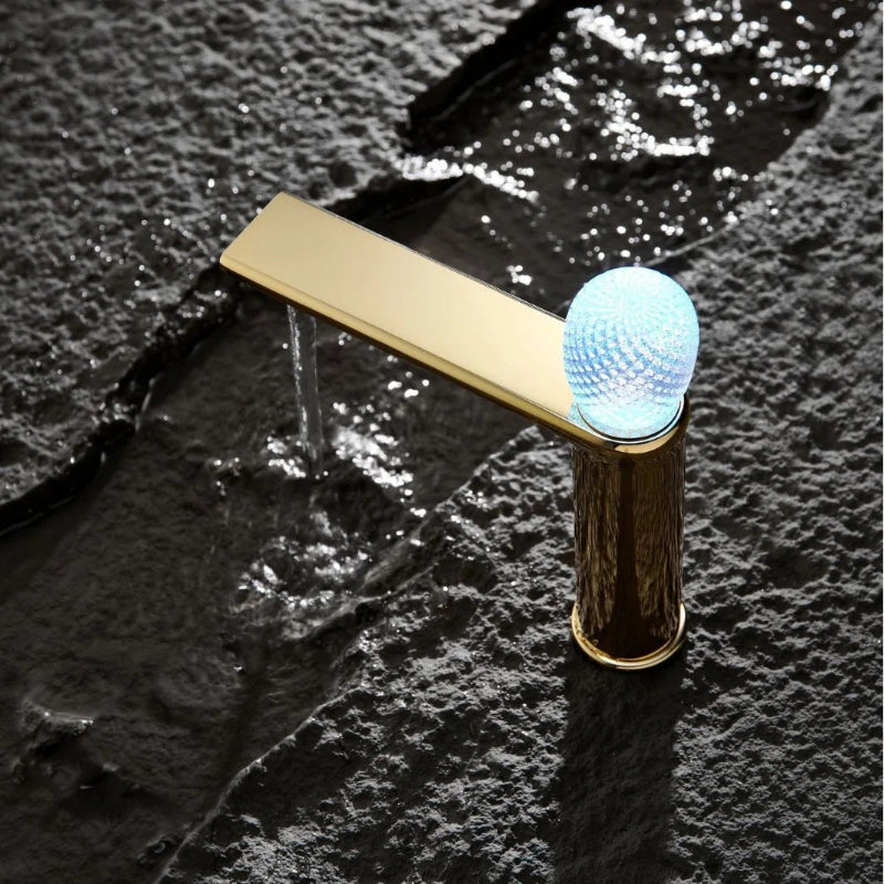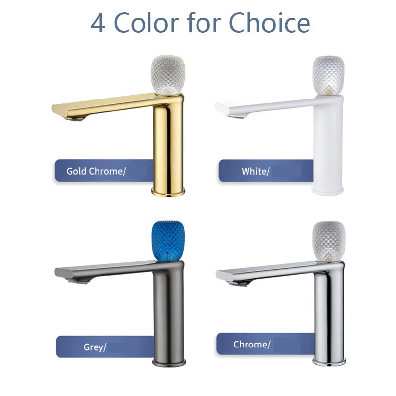 Bathroom Faucet Brass Hot Cold Basin Mixer Tap with LED Crystal Handle