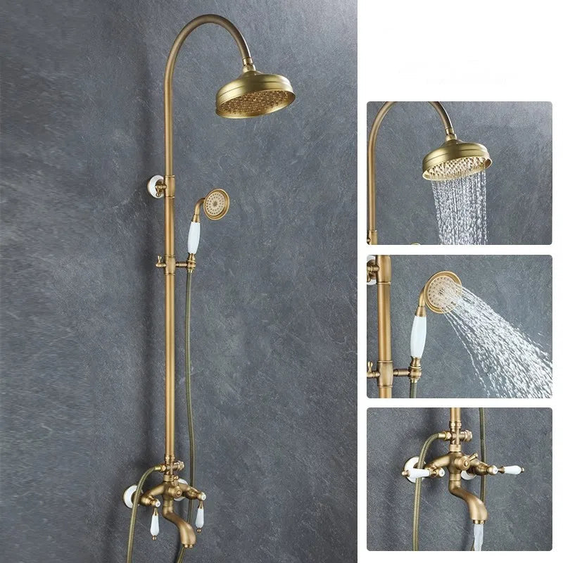 Antique Bathroom Shower Faucet Set Brass Rainfall Shower Mixer Tap
