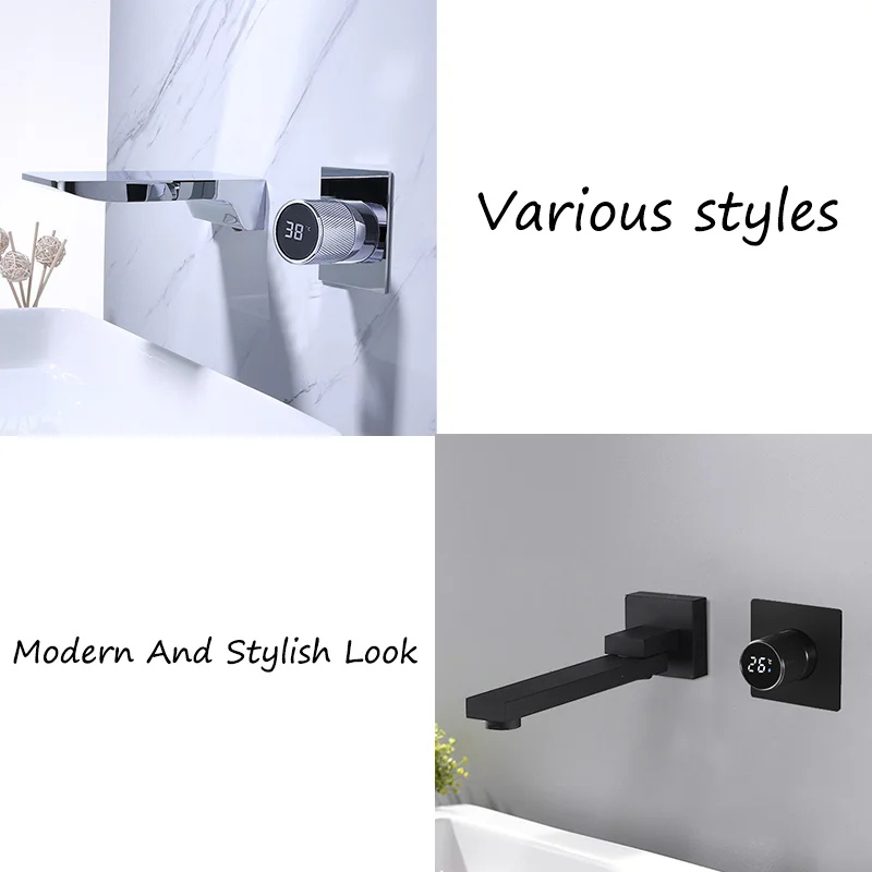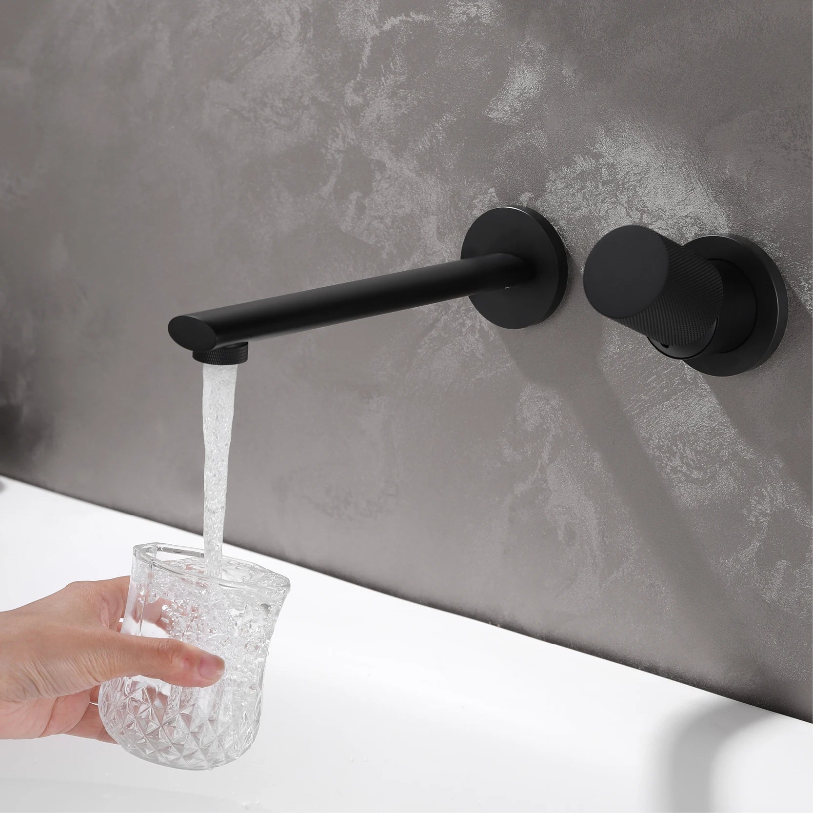 Luxury Brass Wall-Embedded Bathroom Faucet Adjustable Water Pressure