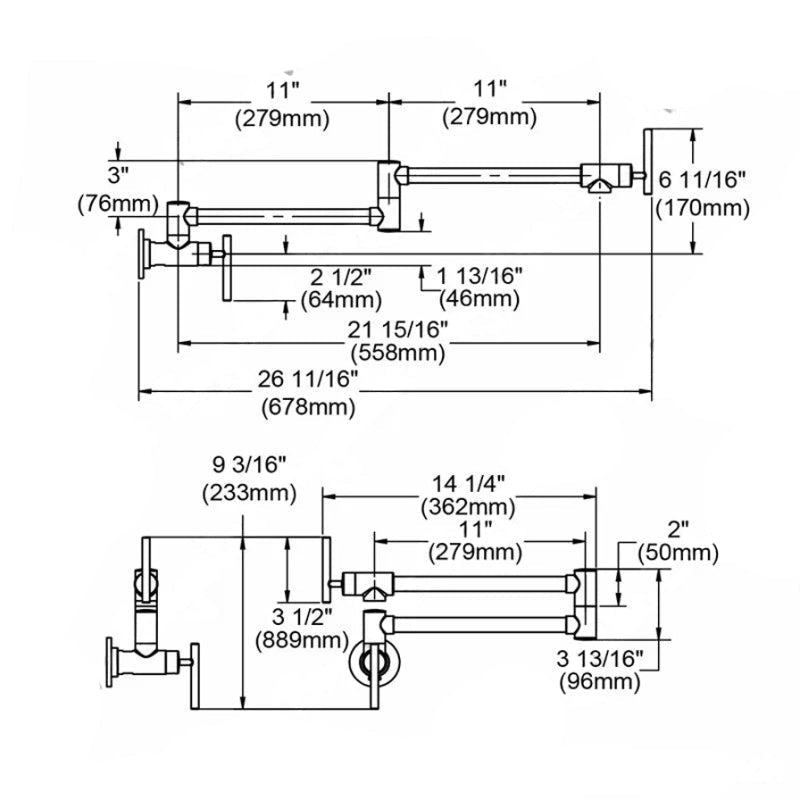 Solid Brass Kitchen Wall Mount Pot Filler Faucet Swivel Spout Water Tap