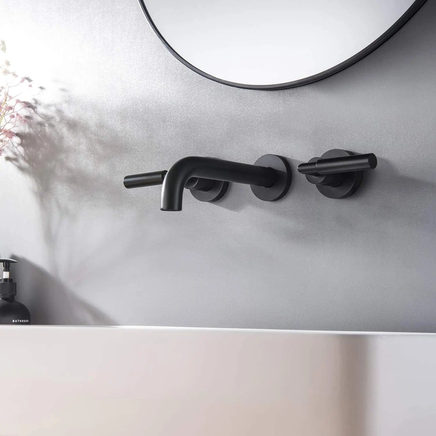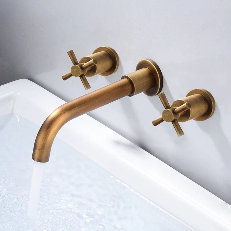 Wall Brass Bathroom Faucet Double Handle Mixer Basin Faucet Vanity Tap