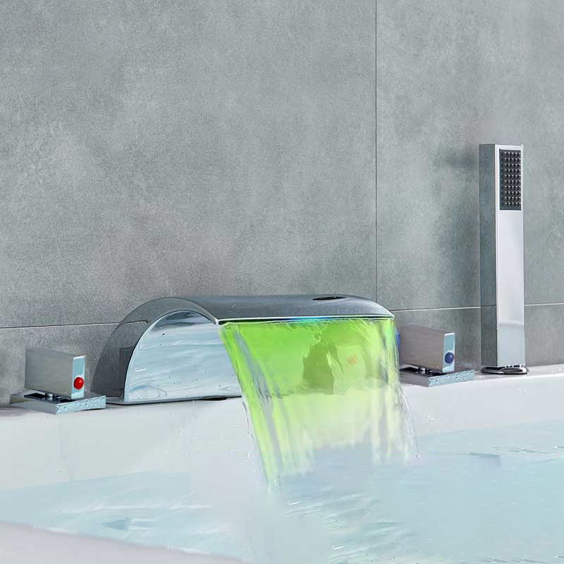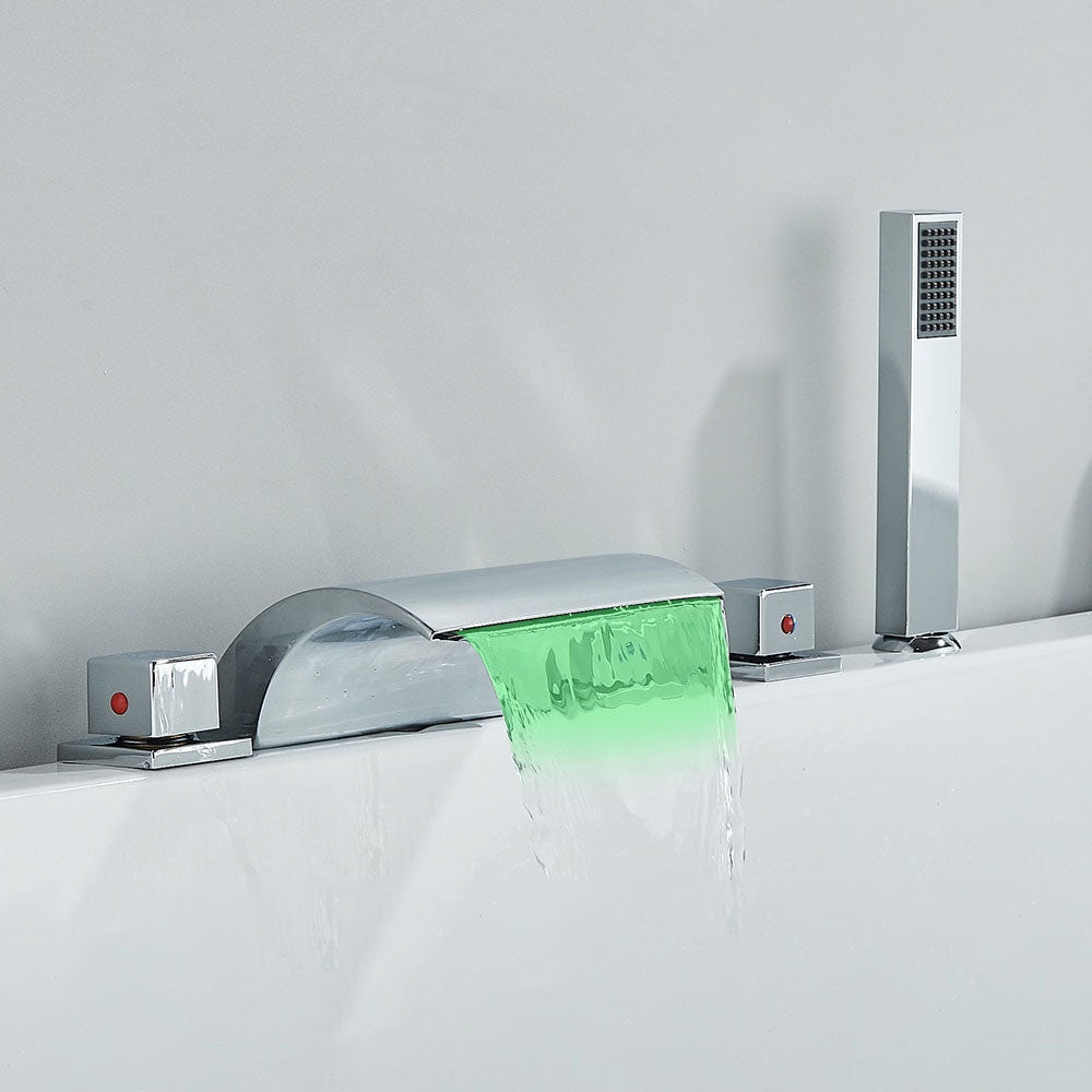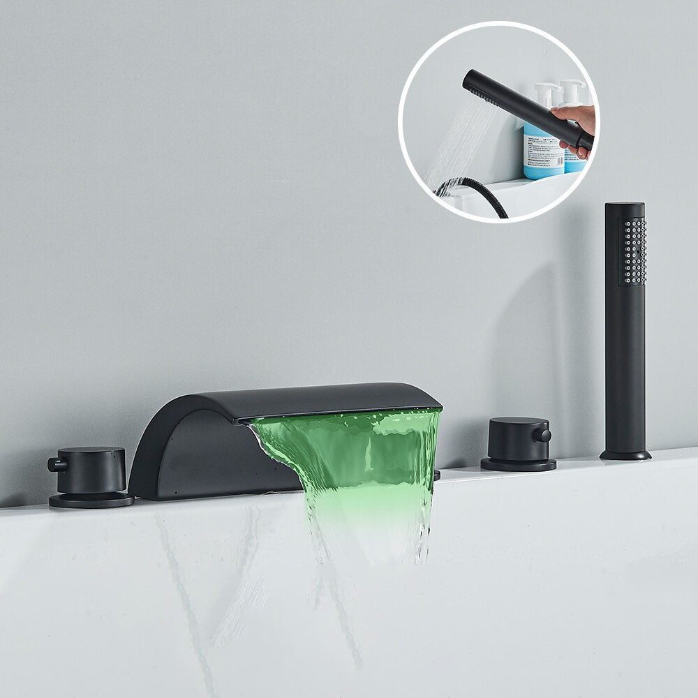 5pc Widespread Bath Tub Sink Faucet Waterfall Faucet Shower Mixer Set