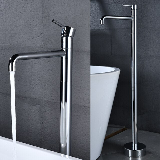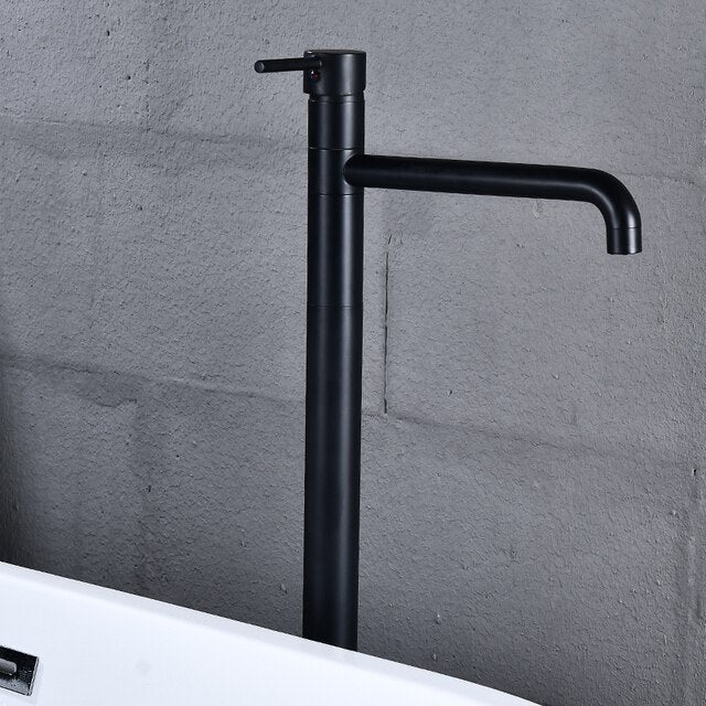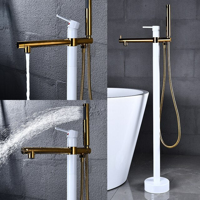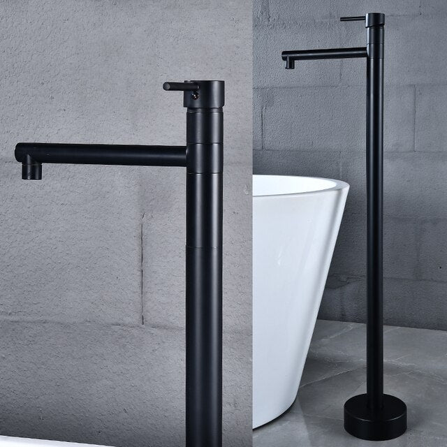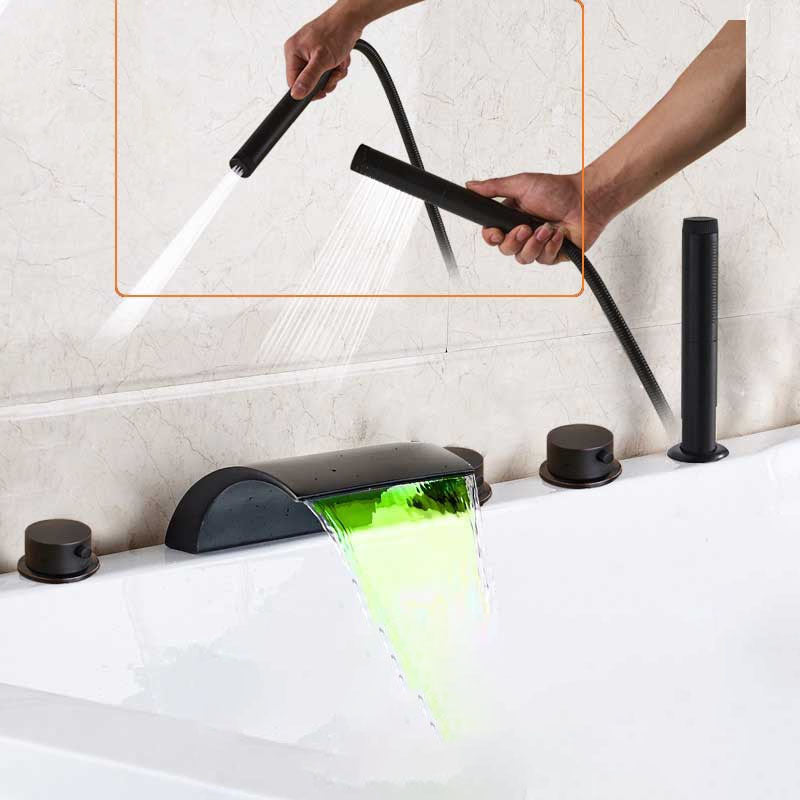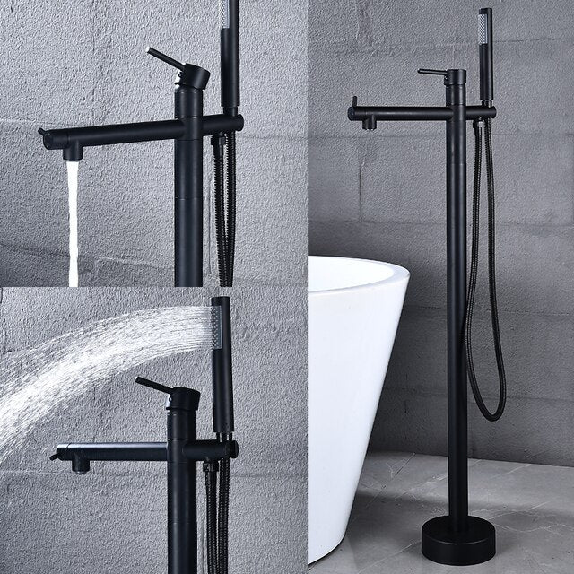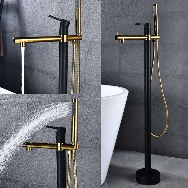 Flooring Bath Faucet with Handheld Shower Black Bathtub Mixer Tap