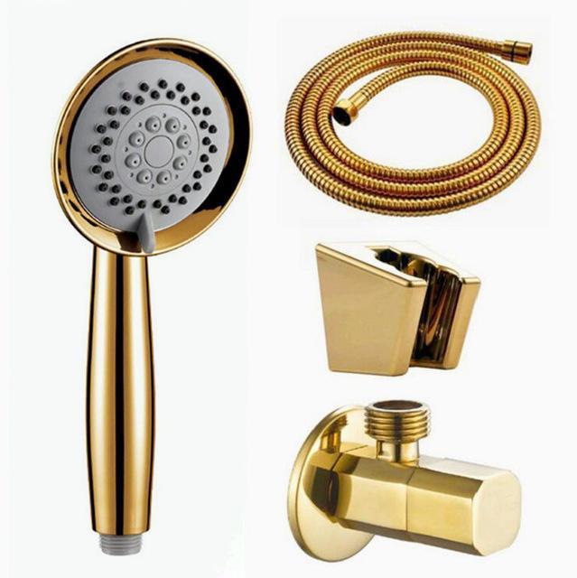 Three Function Gold Plated Solid Copper Luxury Bathroom Hand Shower