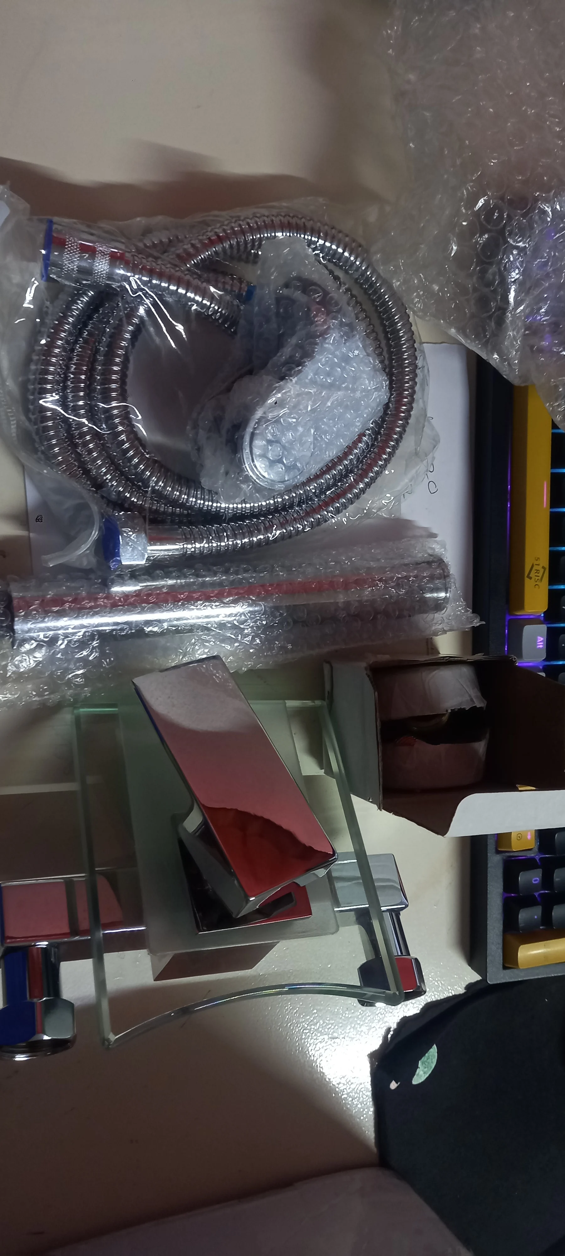 1 * Solid Brass and Square Glass Spout Waterfall Handheld Shower Mixer Tap