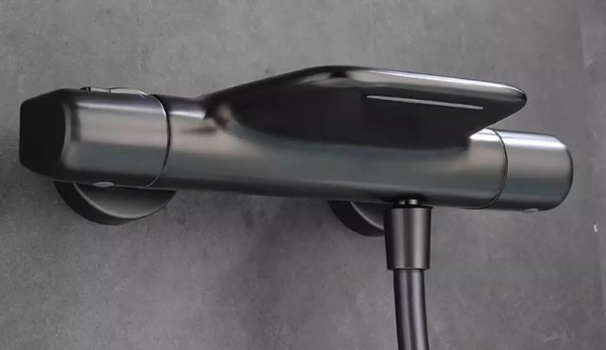 Bring modern elegance and comfort to your bathroom with this Thermostatic Waterfall Brass Shower Faucet Mixer Tap with Hand Shower from Index Bath, designed with a sleek waterfall spout and handheld shower, it combines style, precision, and functionality for a truly luxurious bathing experience.