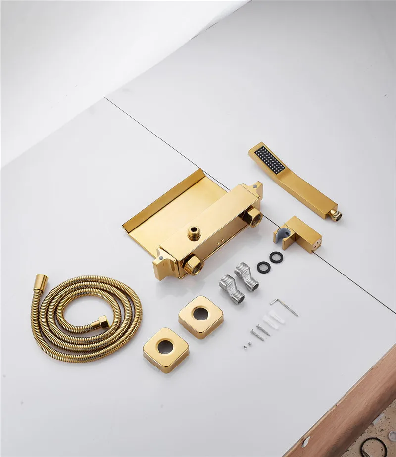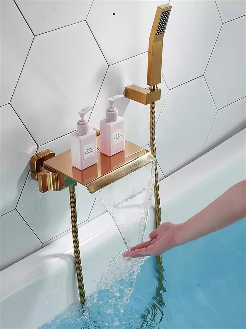 Bathtub Brass Waterfall Mixer Shower Faucet with Handheld Shower Set