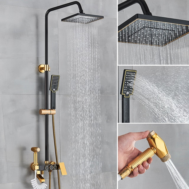 1 *Shower Faucet Set Rainfall Bathroom Shower Mixer Faucets with Bidet