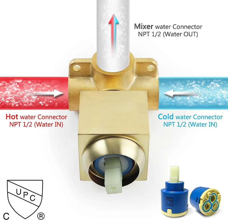 Brass Shower Mixer Valve Wall Mounted Single Handle Hot Cold Tub Valve