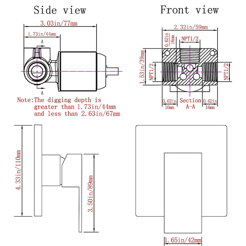 Wall Mounted Basin Faucet Concealed Brass Single Handle Mixer Tap