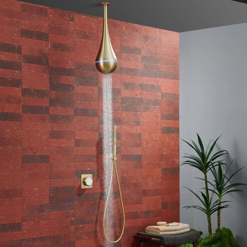 Minimalist Brass Concealed Ceiling Shower Head with Handheld Shower