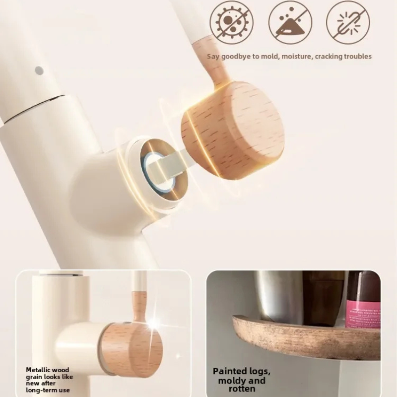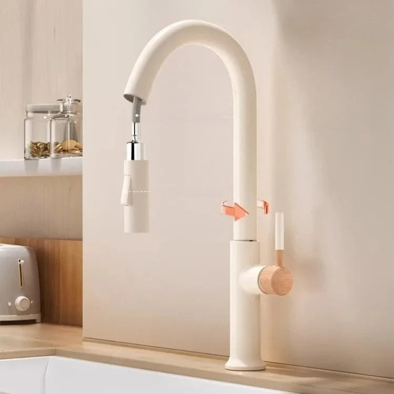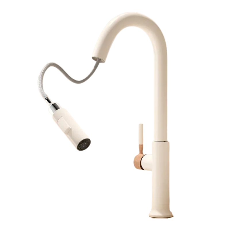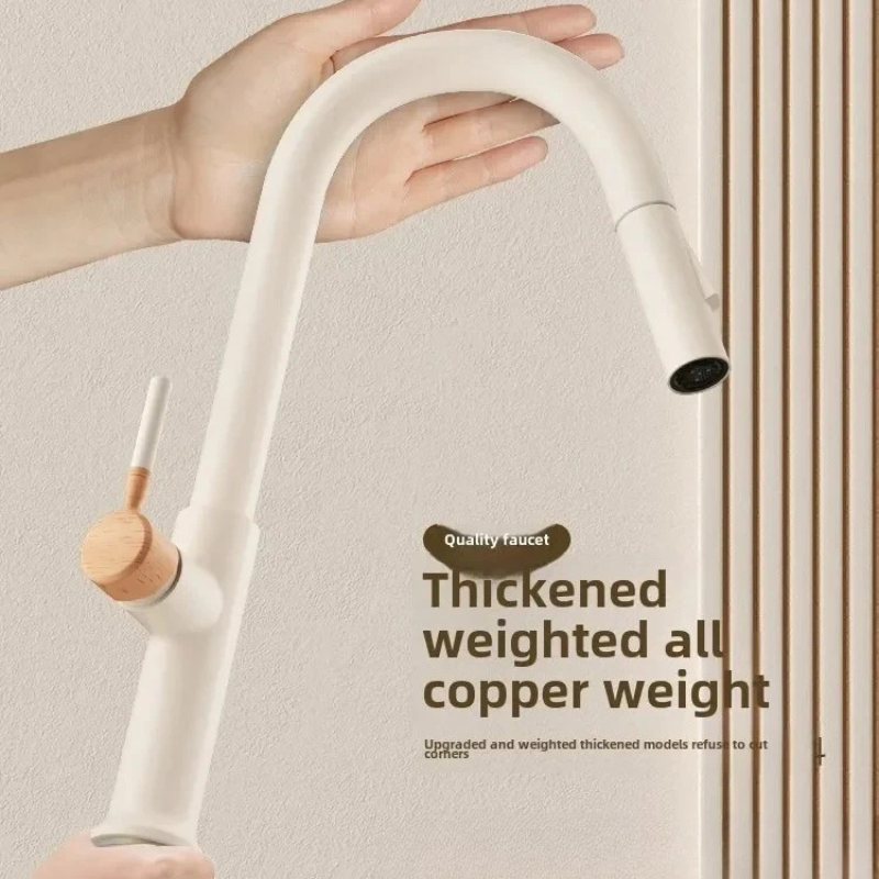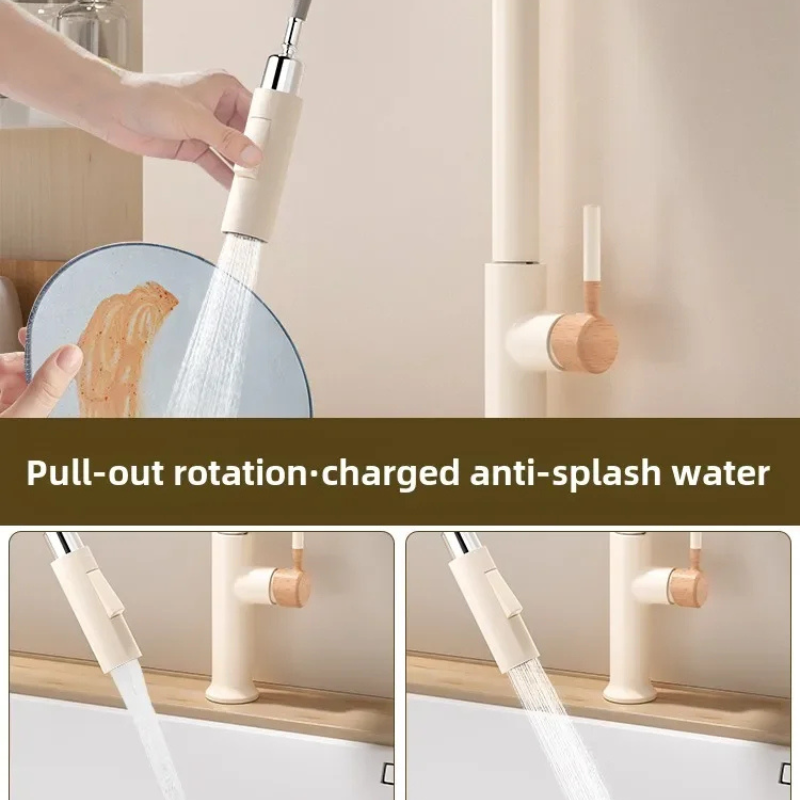 Wooden Handle Kitchen Faucet Stainless steel Pull-Out Mixer Tap