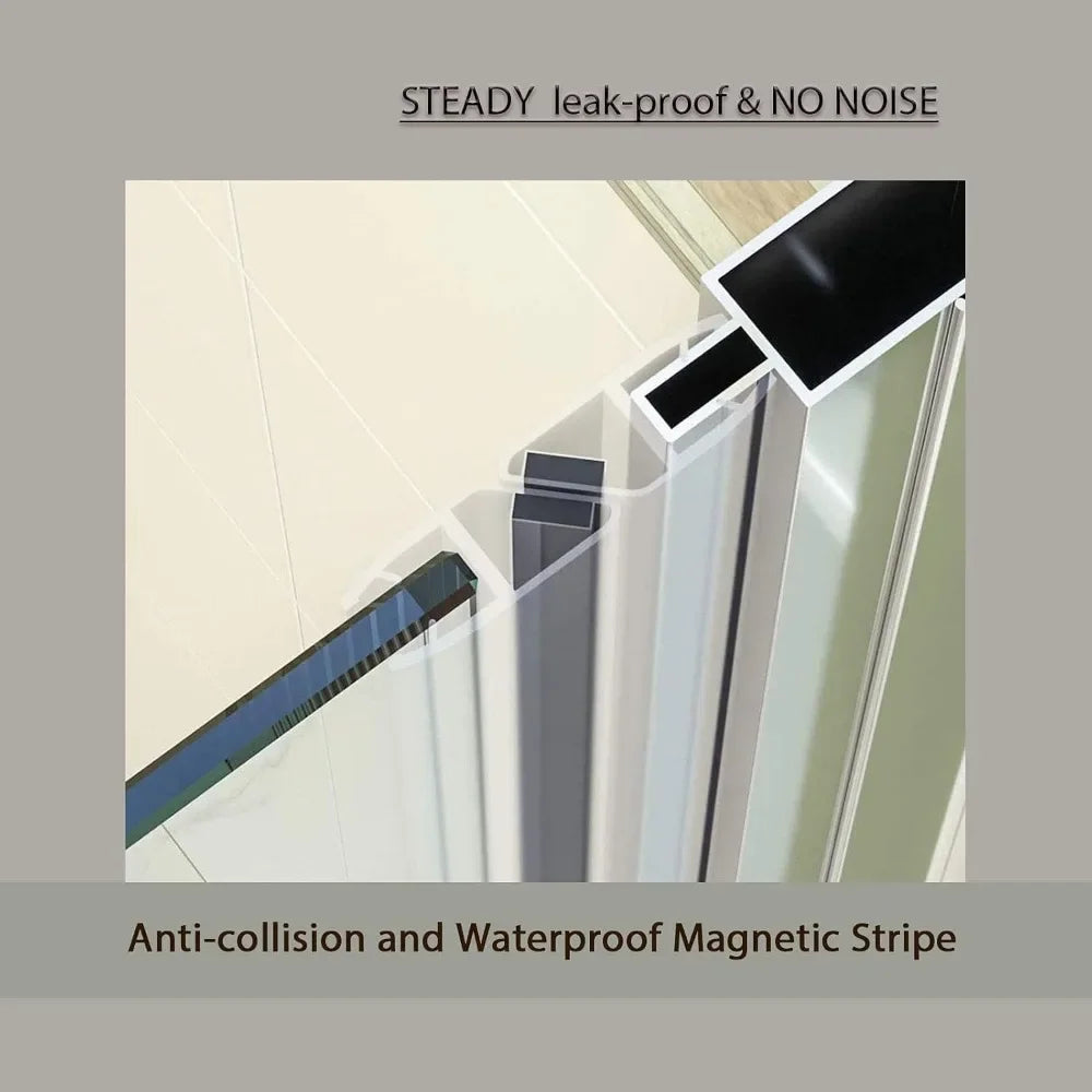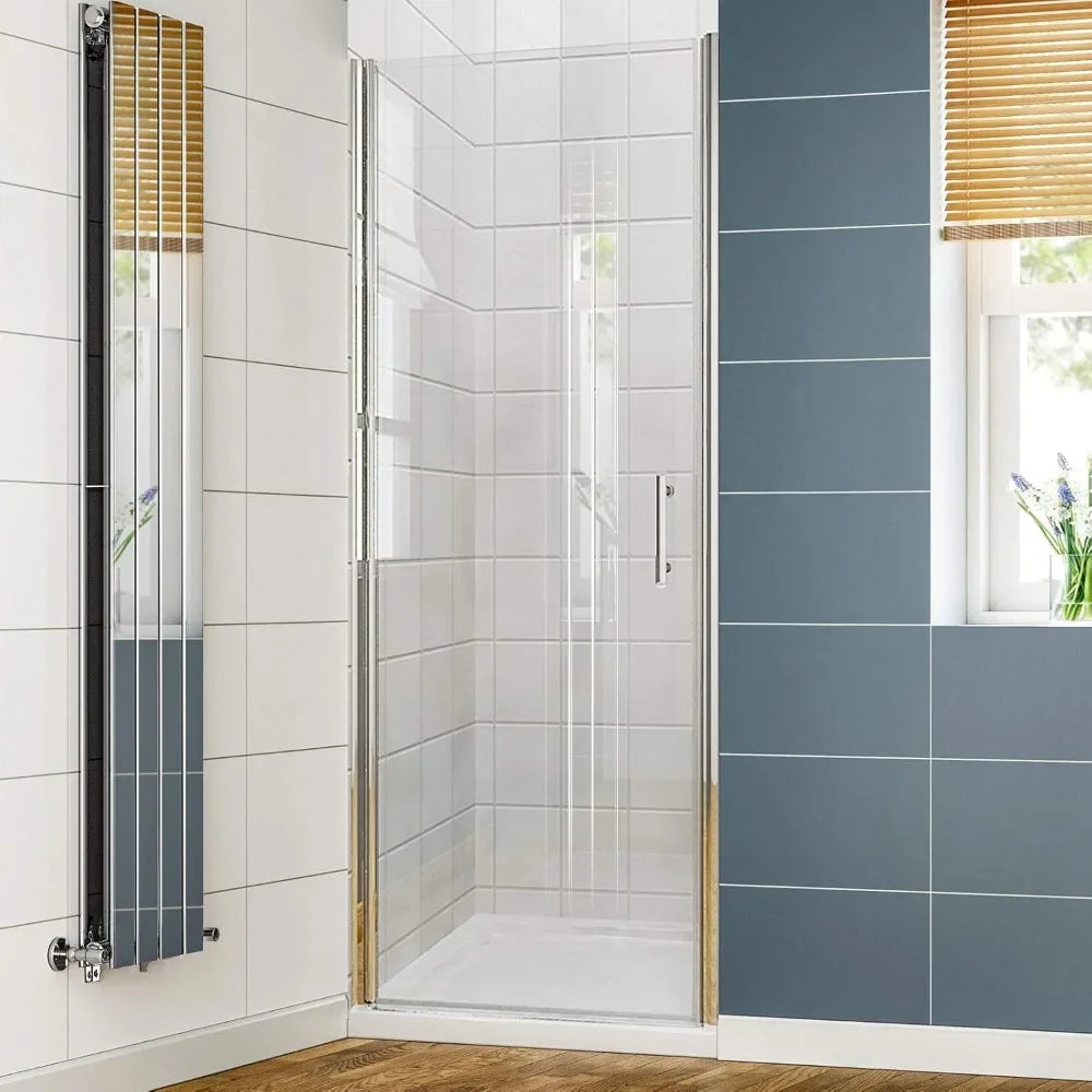 - Great Partner for Smaller Bathroom: Swing glass panel to almost 90 degree to go in, saving your bathroom space