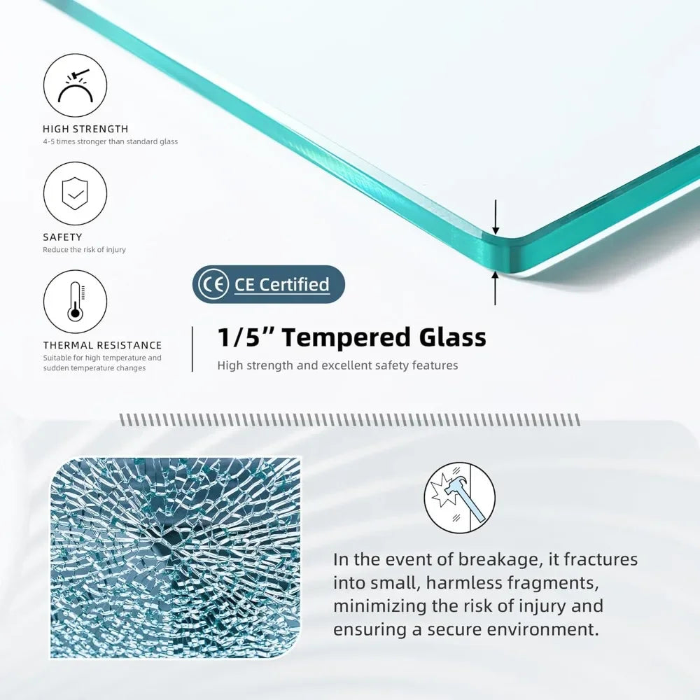 - Premium Material: This shower door is constructed from 1/5" (5mm) thick tempered glass, which is resistant to shattering, ensuring a safe showering experience.