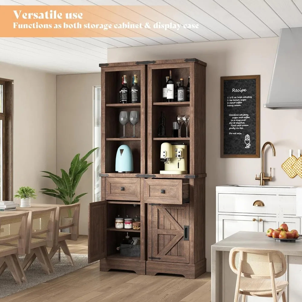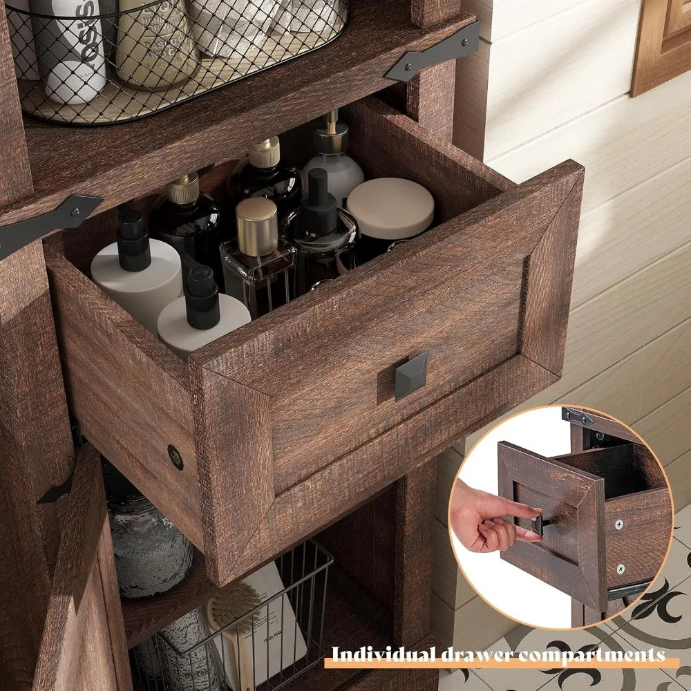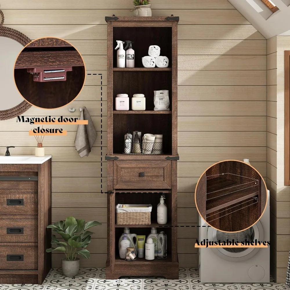 68" Tall Bathroom Cabinet Farmhouse Storage With Door Shelves Drawers