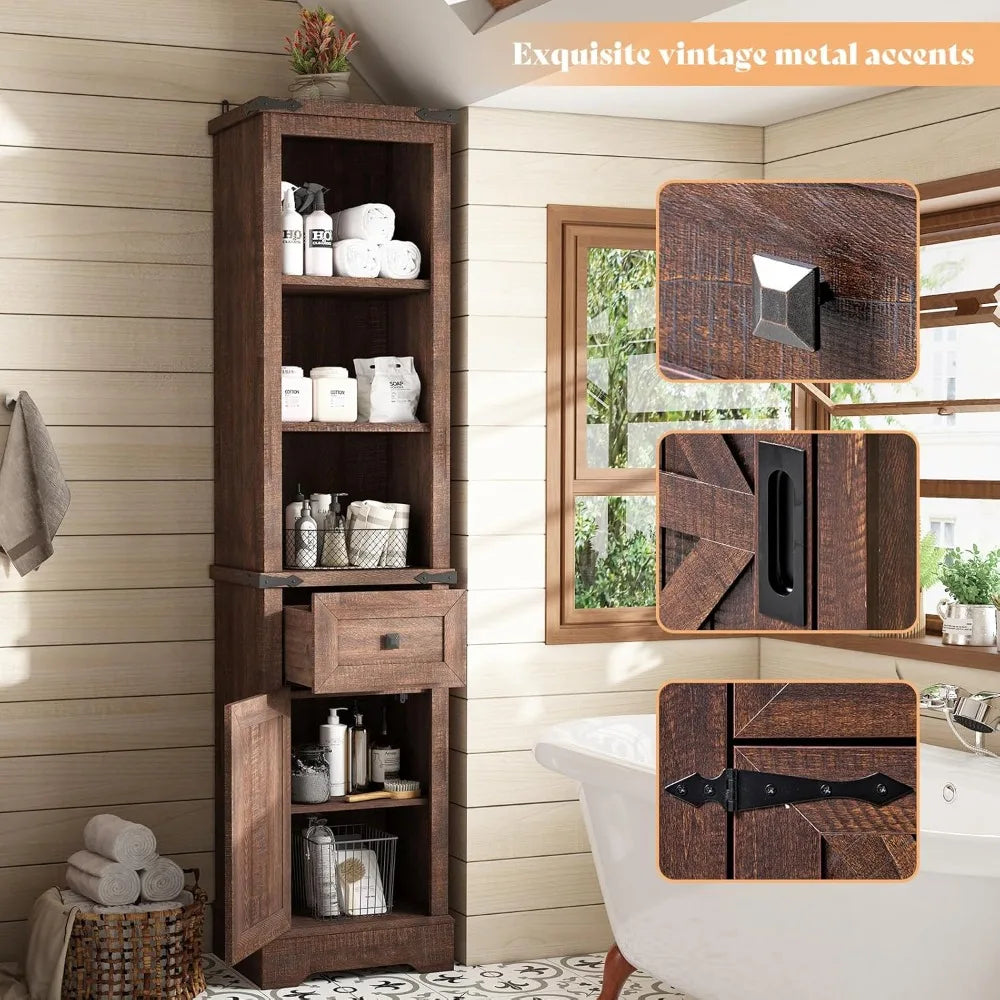 1 * 68" Tall Bathroom Cabinet Farmhouse Storage With Door Shelves Drawers