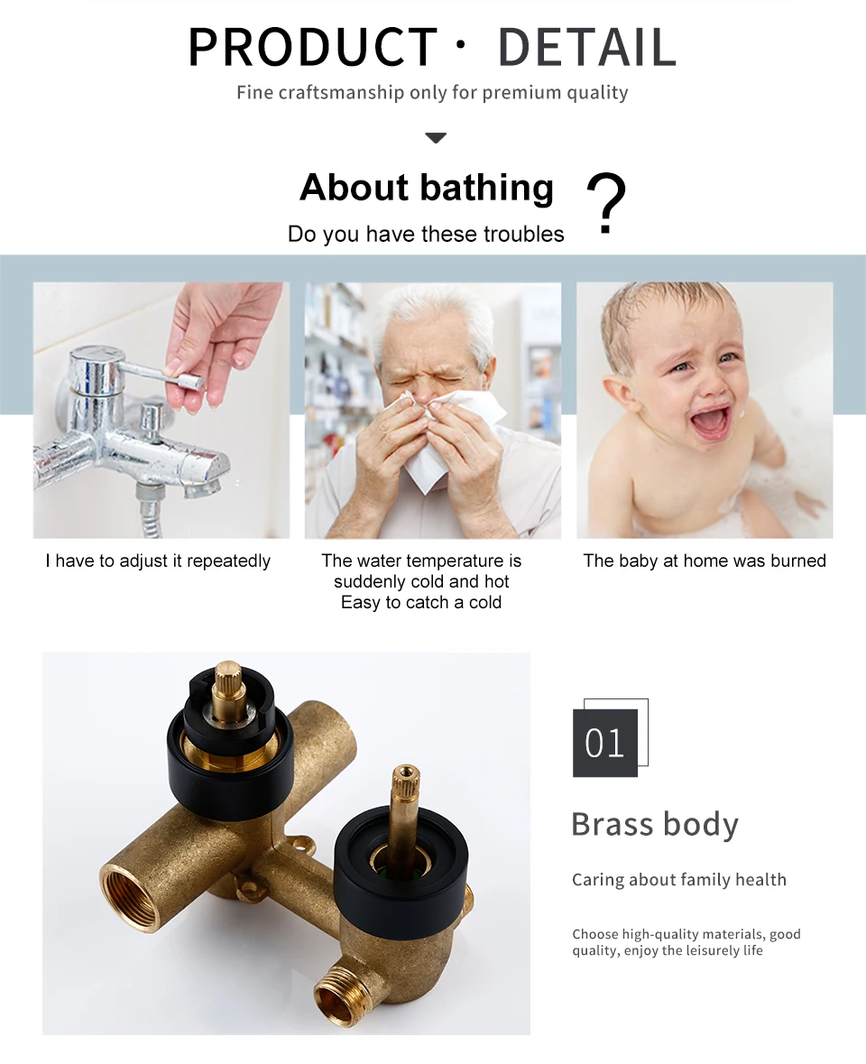- Cooling & Heating Control: Designed to provide stable hot and cold water mixing for a comfortable and efficient shower experience.