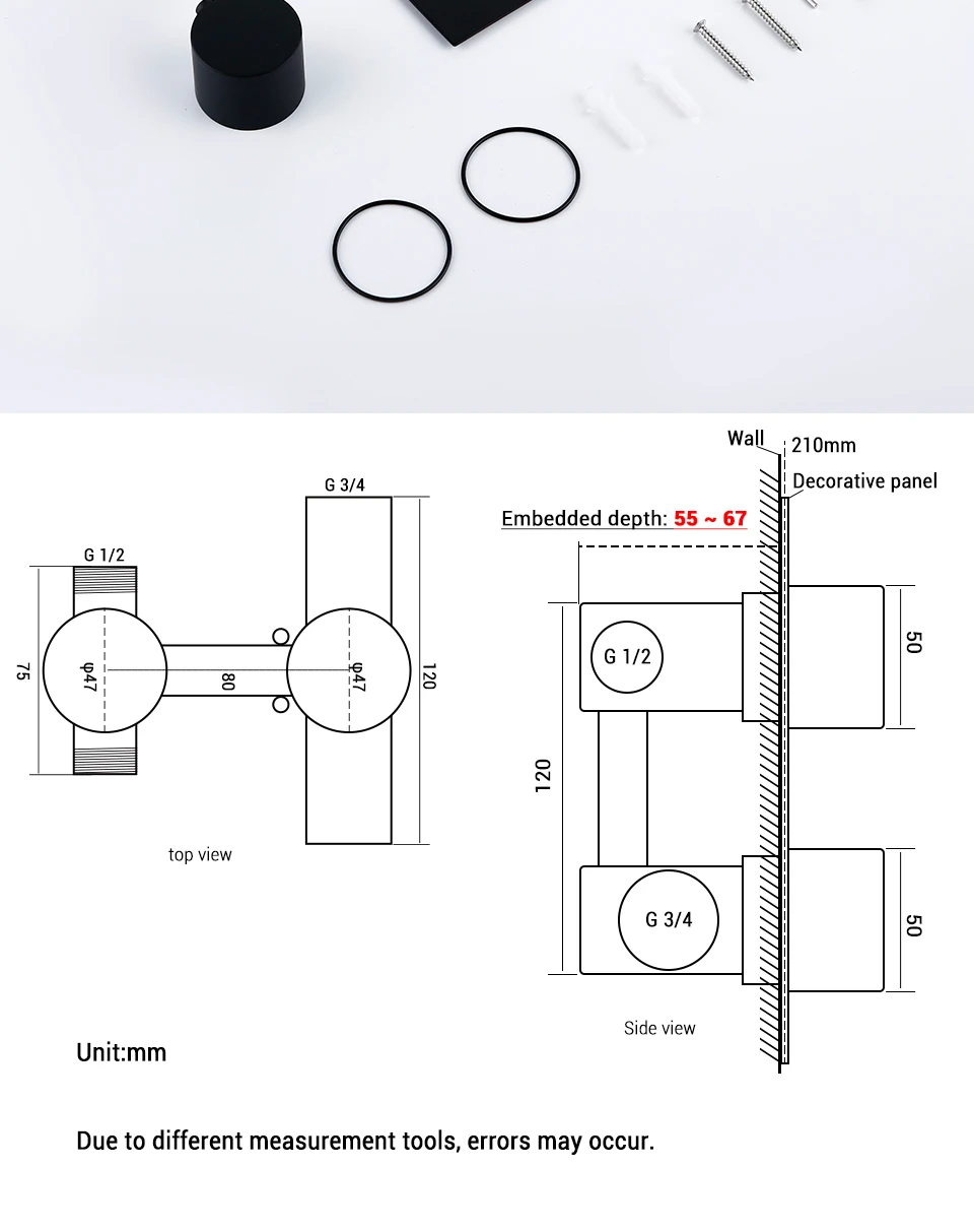 - 210 mm (wall + decorative panel) 8.268 in