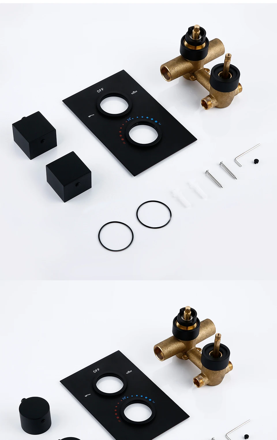 Upgrade your bathroom with this sleek and modern Double Handle Embedded Thermostatic Shower Valve Brass Shower Faucet from Index Bath, designed for precise temperature control and a luxurious showering experience. Featuring a durable solid-brass body, dual handles, and a matte black finish, this built-in shower faucet blends premium performance with contemporary style.