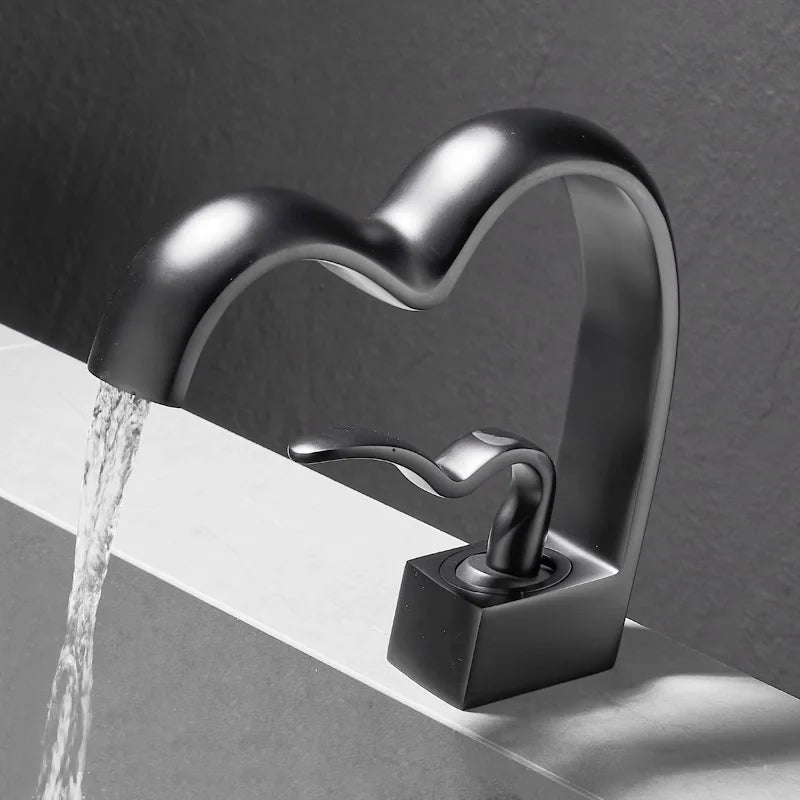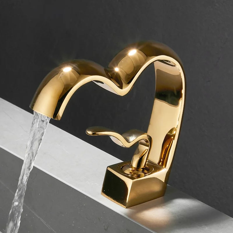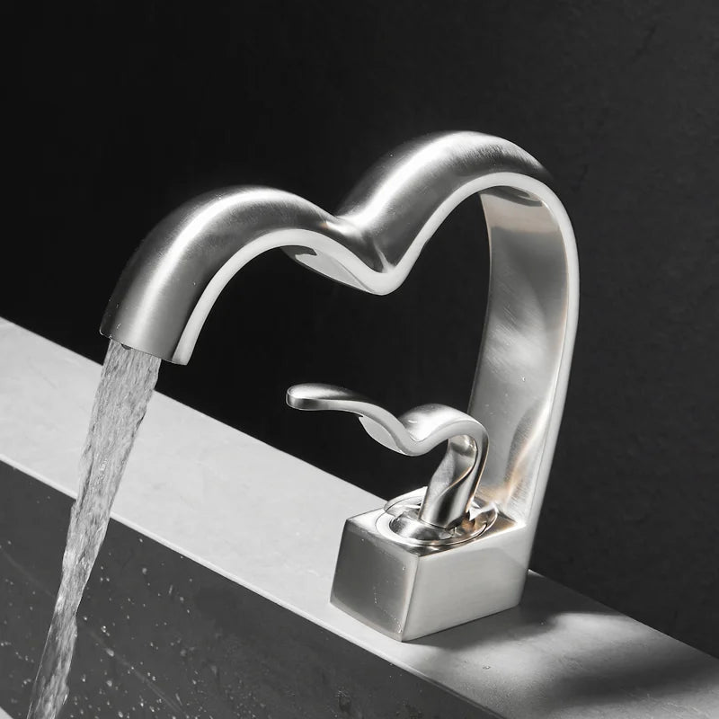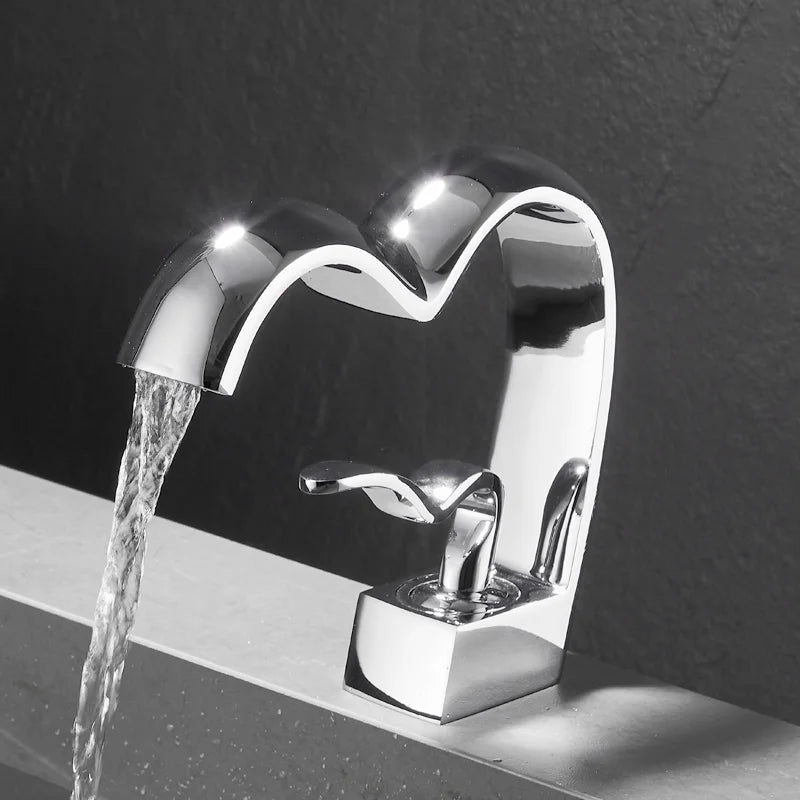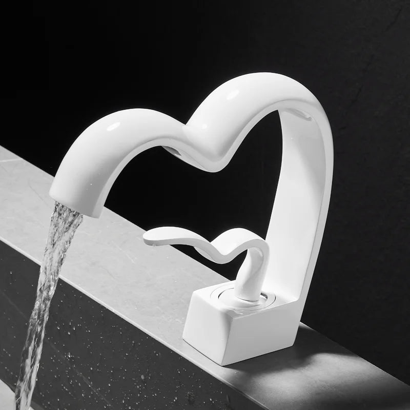 Solid Brass Creative Love Shape Design Waterfall Basin Sink Faucet