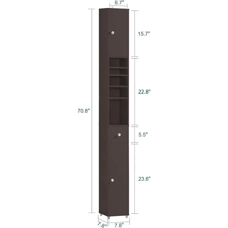 - This tall thin storage cabinet is designed with convenience and functionality in mind. It is perfect for narrow spaces or to be placed behind a door. Despite the small floor area, it offers ample storage space, allowing you to keep your items organized and easily accessible.